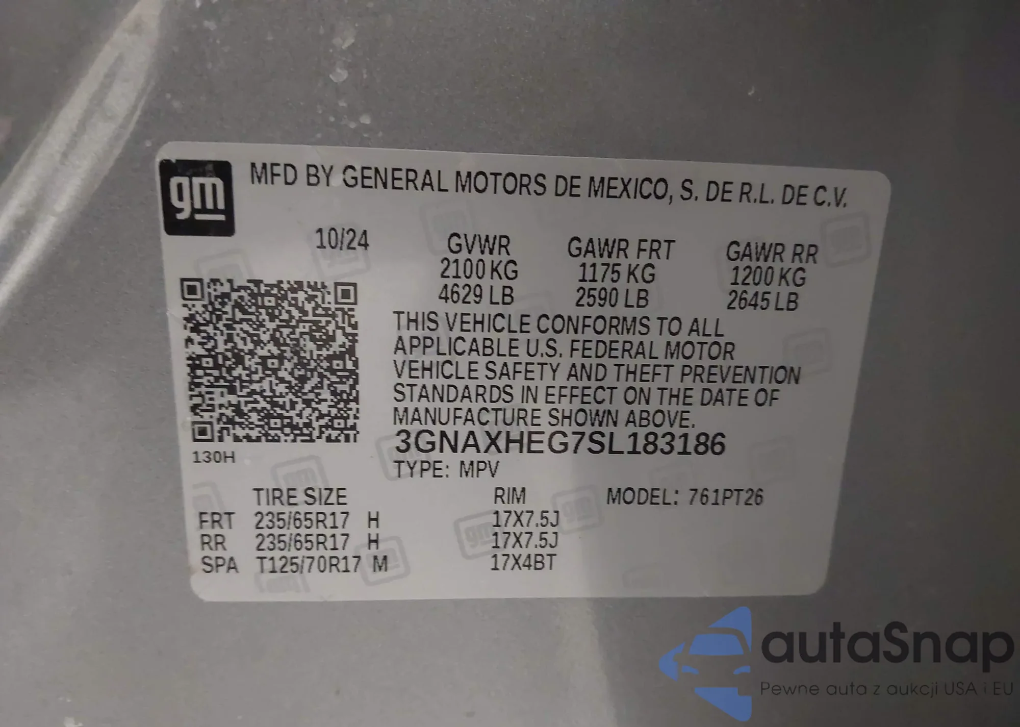 LOT: 44044302 VIN: 1FMSK8FH1MGA21849