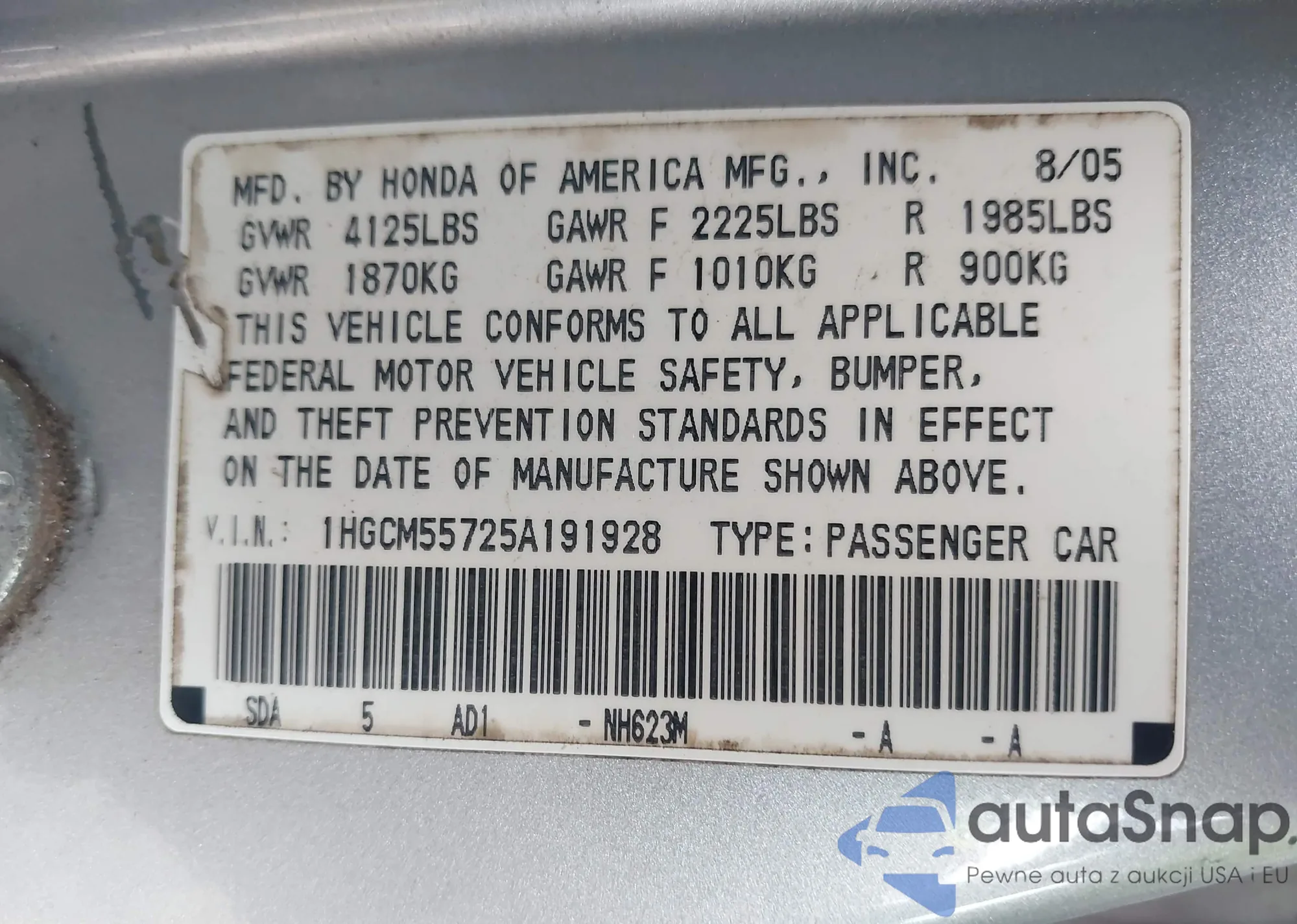• VIN 5FNRL5H99CB020381
