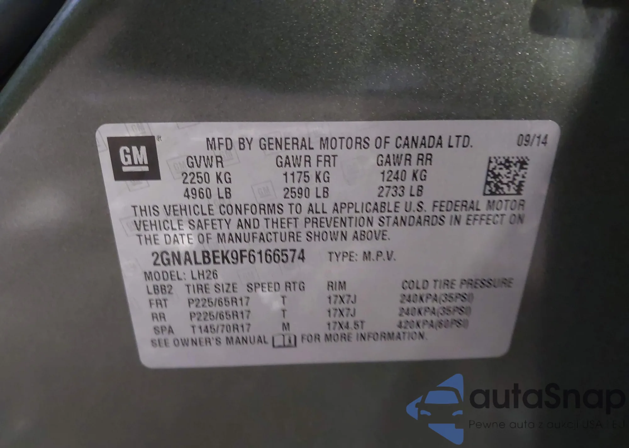 • VIN KL7CJRSB7FB101463