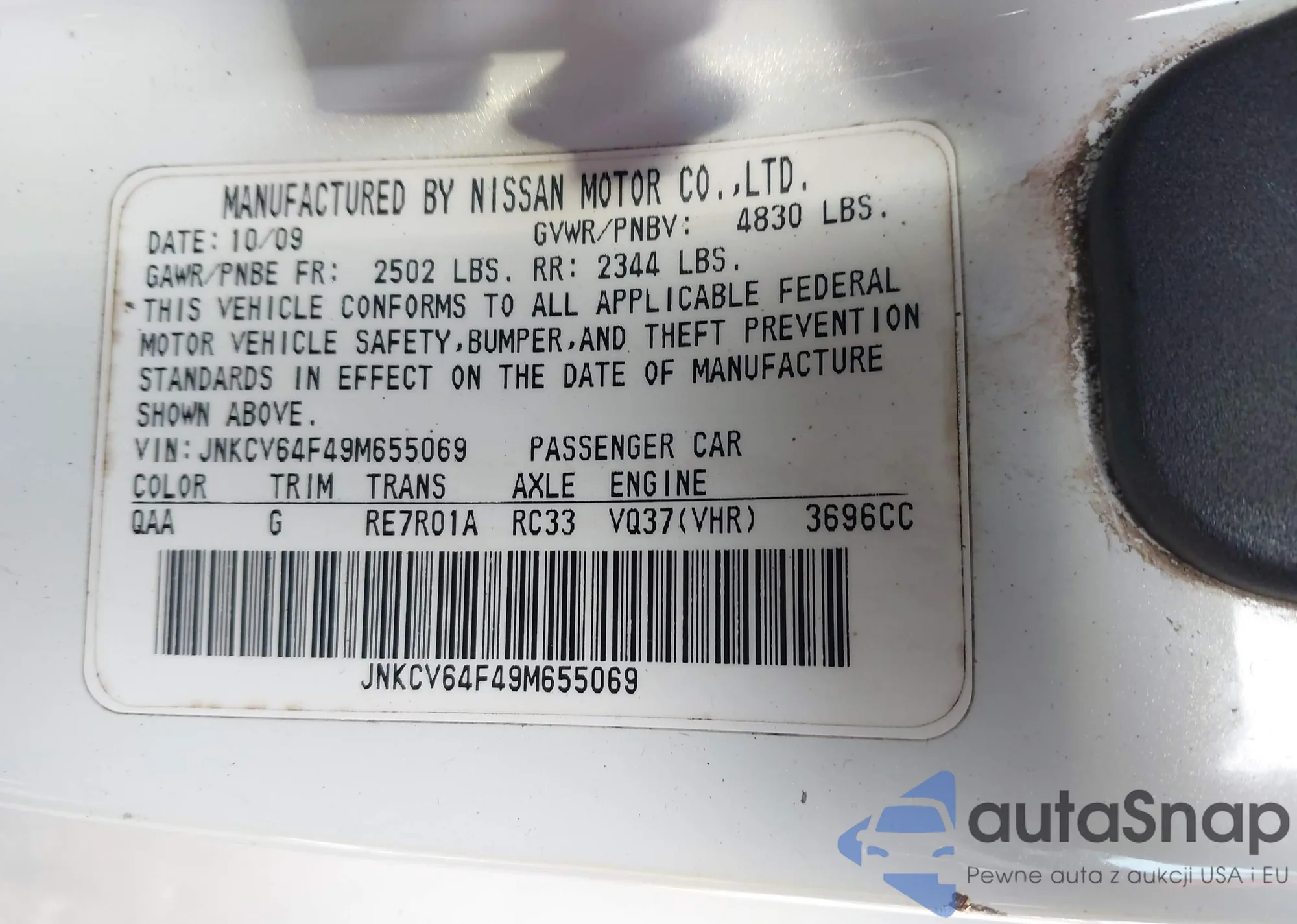 • VIN JNKCV64F49M655069