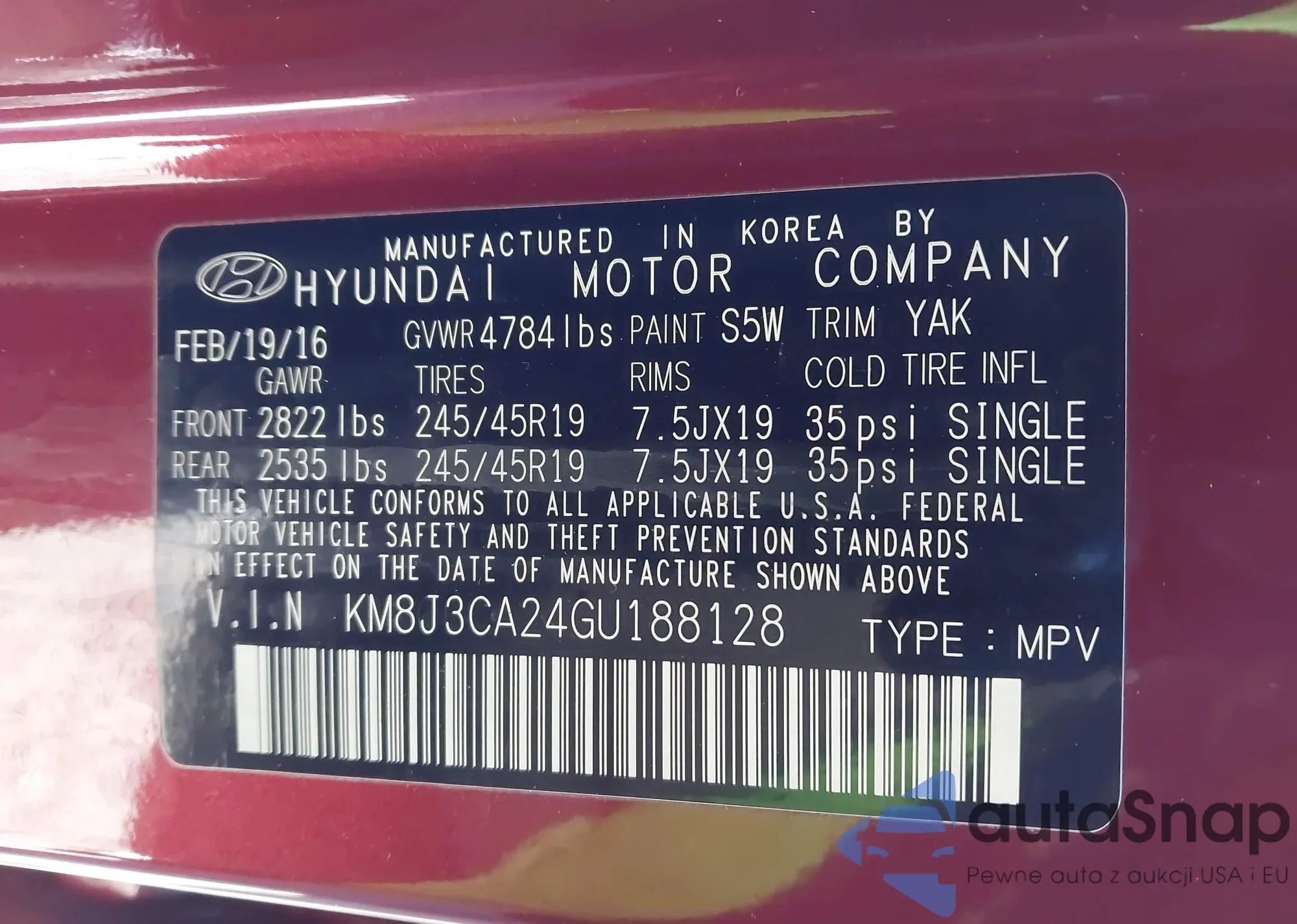 LOT: 44042236 VIN: KMHEC4A41FA119972