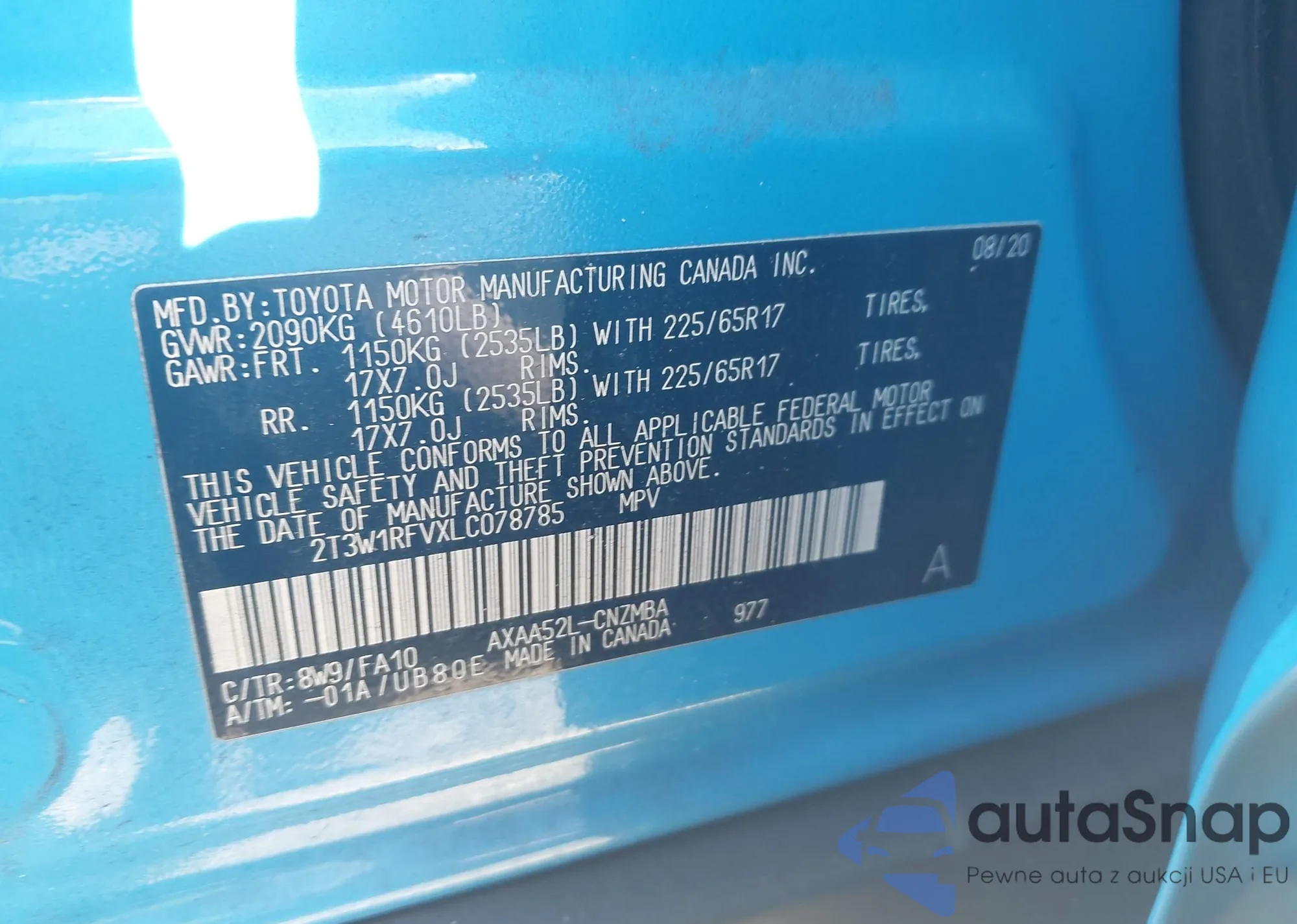 LOT: 43894977 VIN: 2T3W1RFVXLC078785