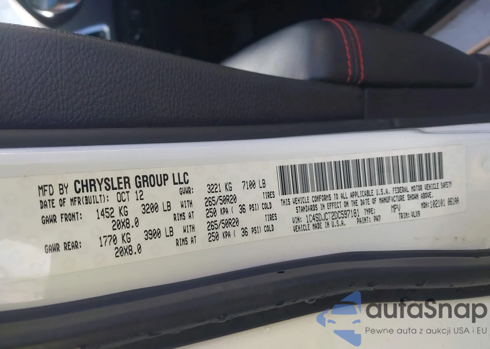 LOT: 44090730 VIN: 1C4SDJCT2DC597181