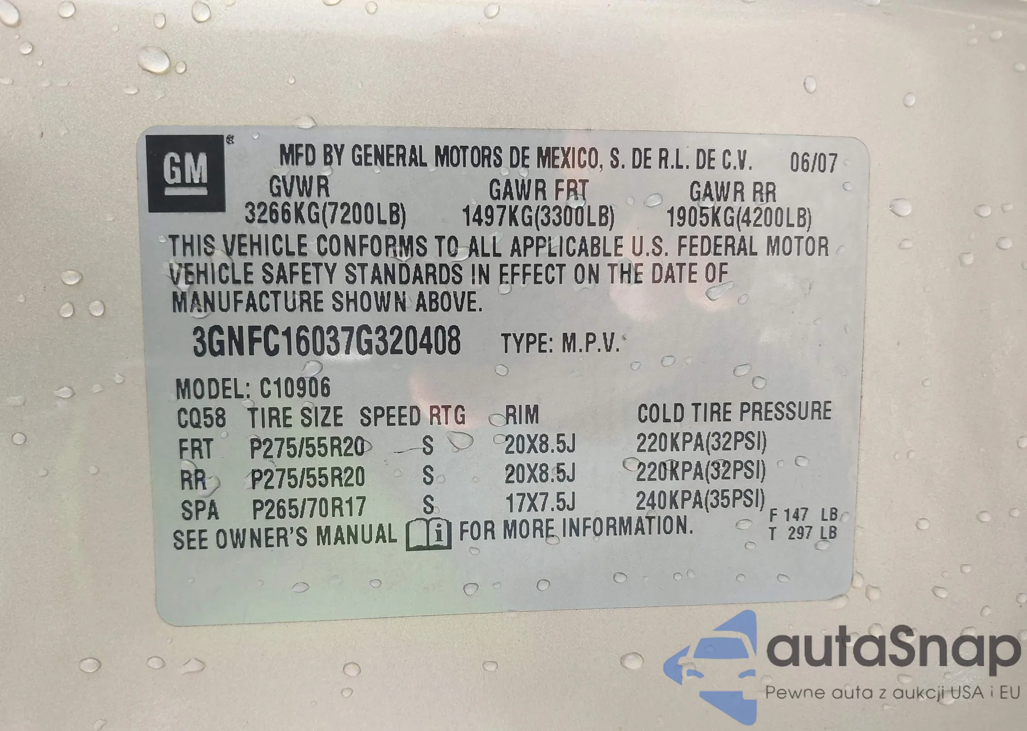 LOT: 44311674 VIN: 3GNFC16037G320408
