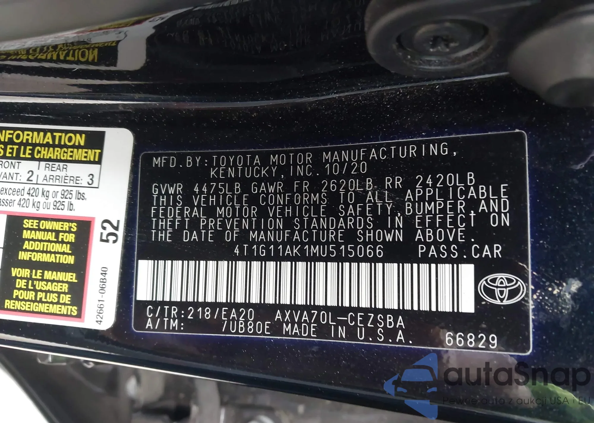 • VIN 4T1G11AK1MU515066