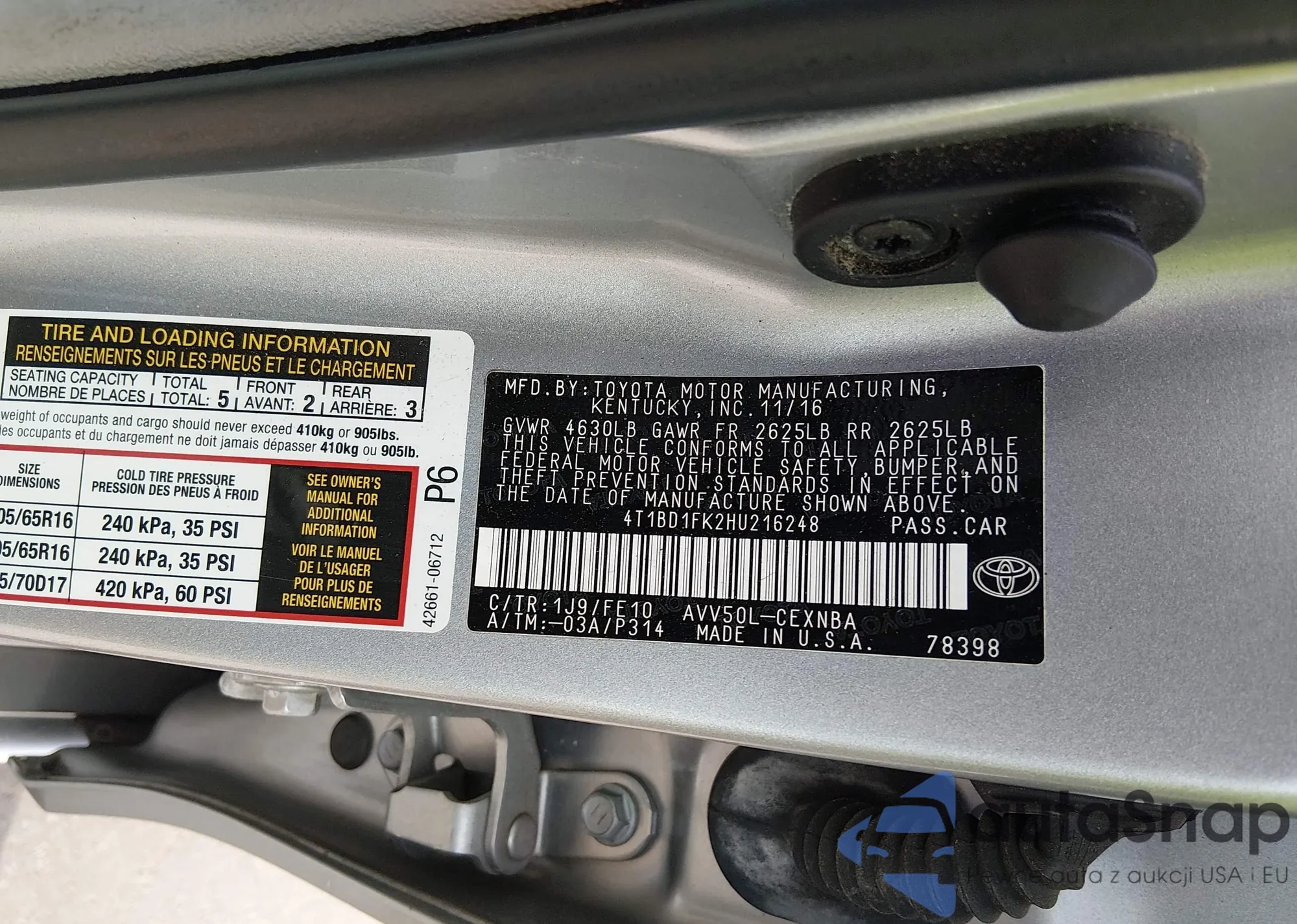 • VIN 3KPFT4DE5SE122877
