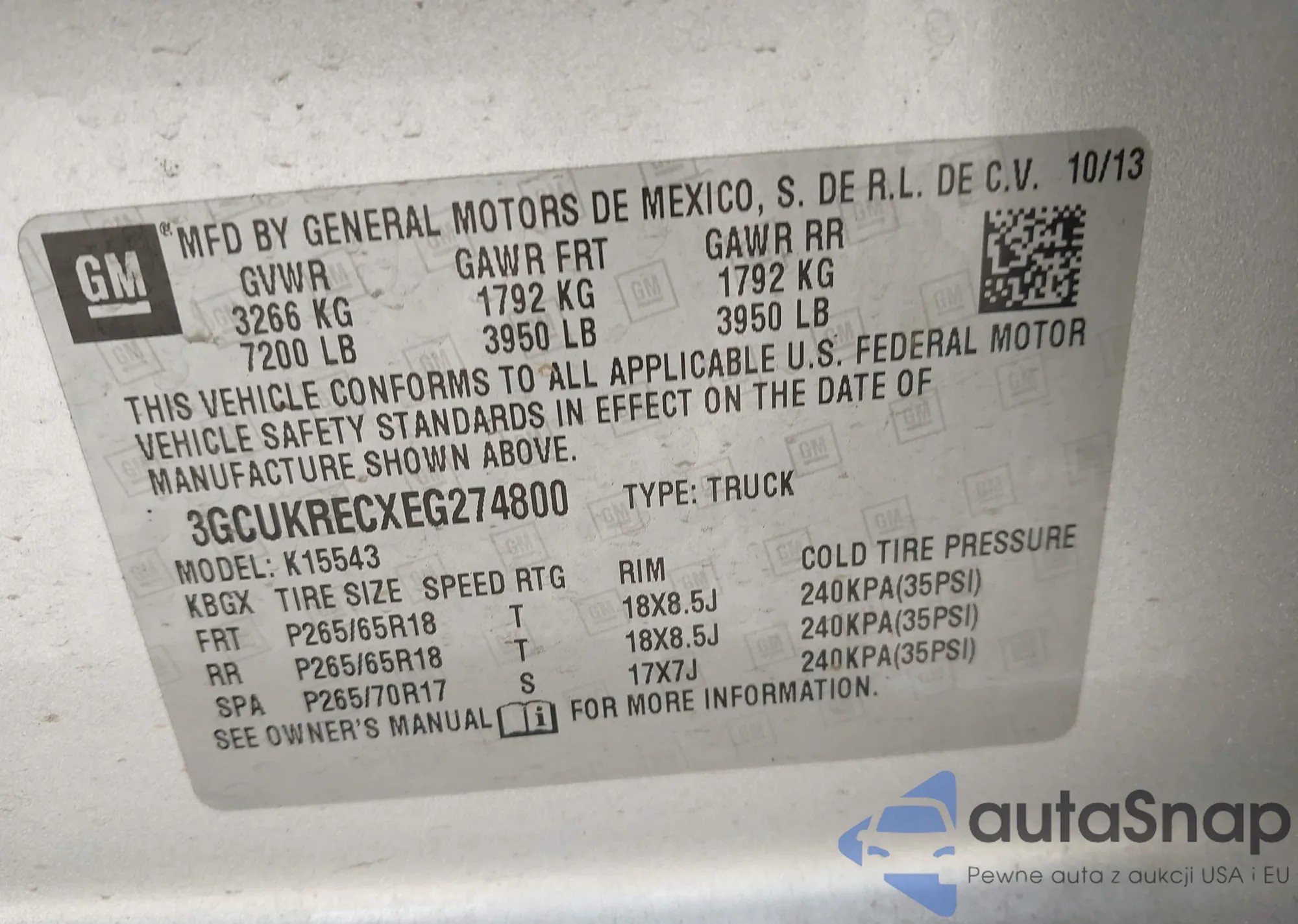 • VIN 3GCUKRECXEG274800