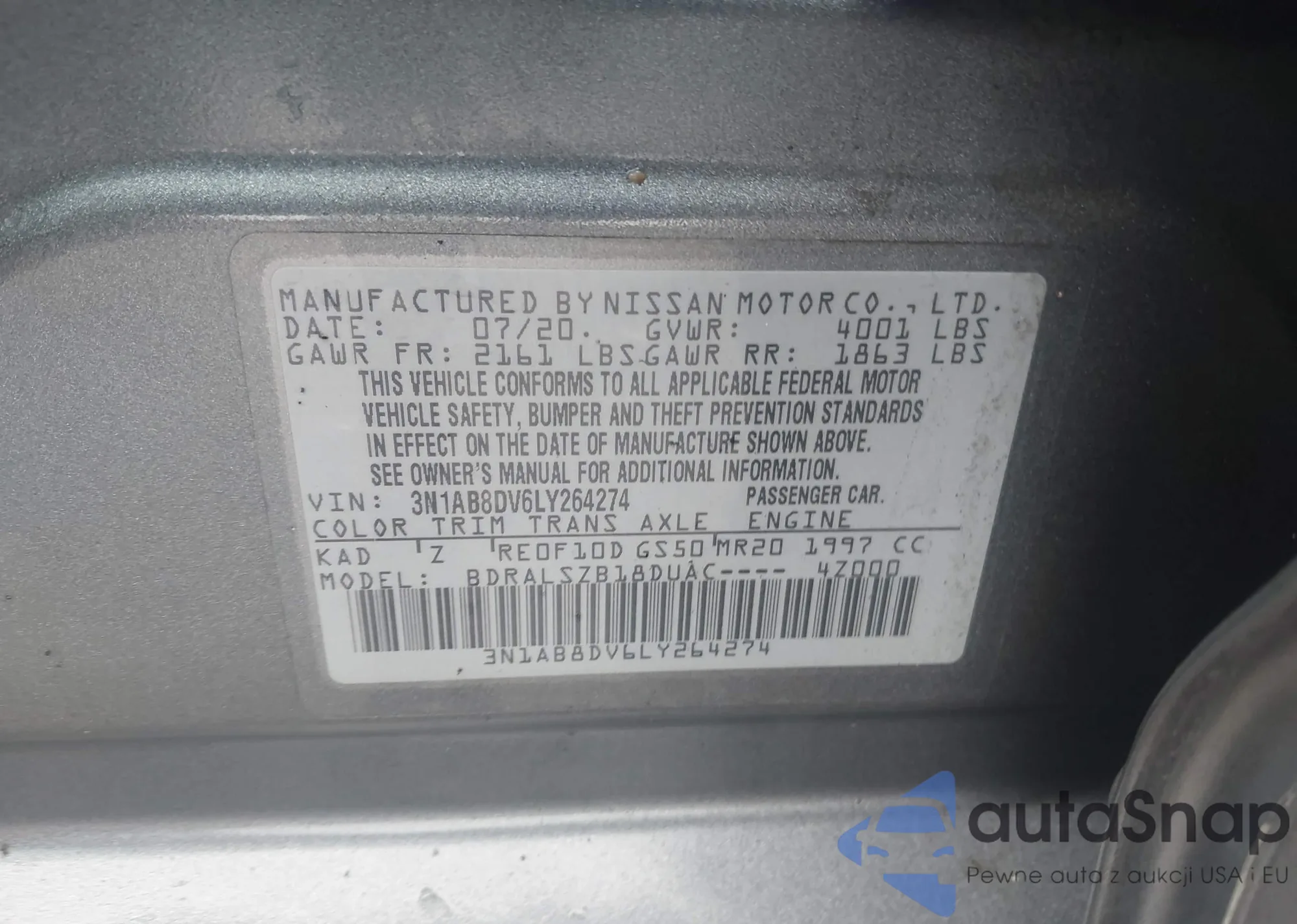 • VIN 3N1AB8DV6LY264274