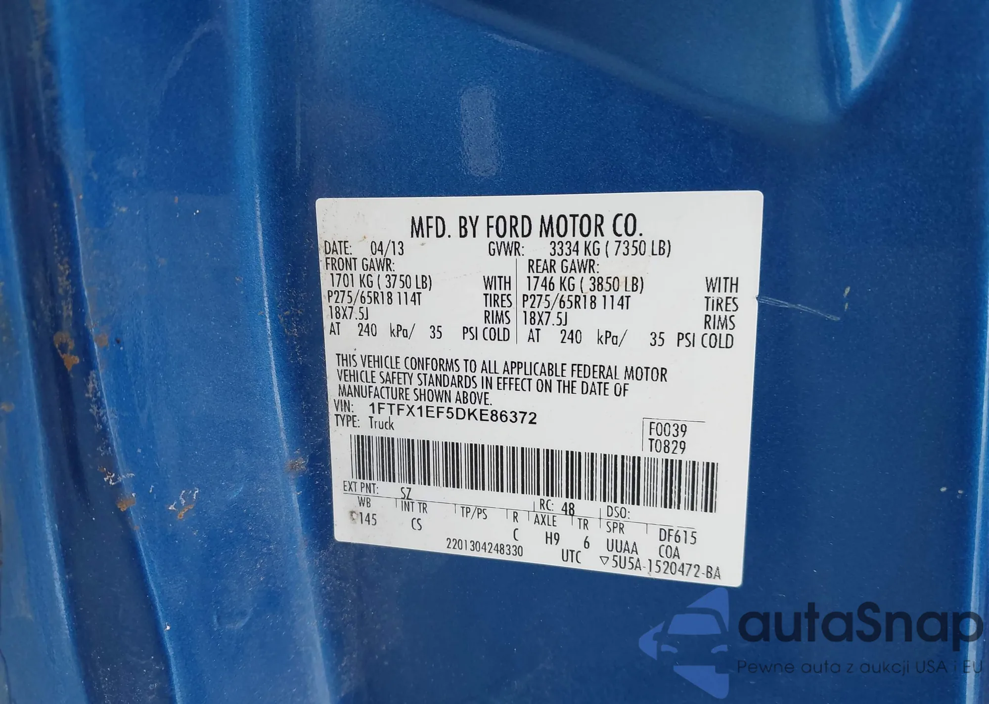 • VIN 1FTFX1EF5DKE86372