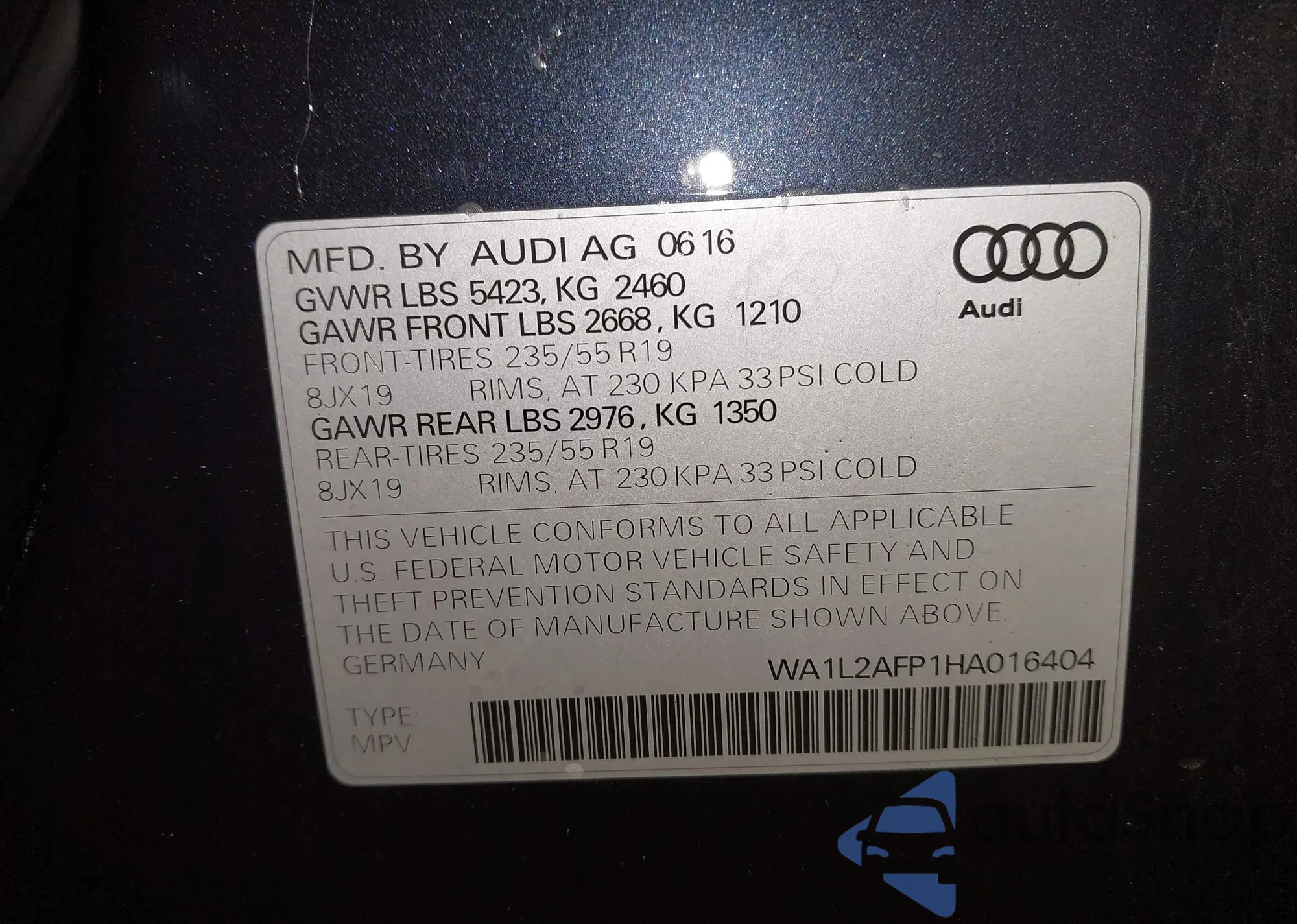 LOT: 44242058 VIN: 3VW5T7AU9HM051462