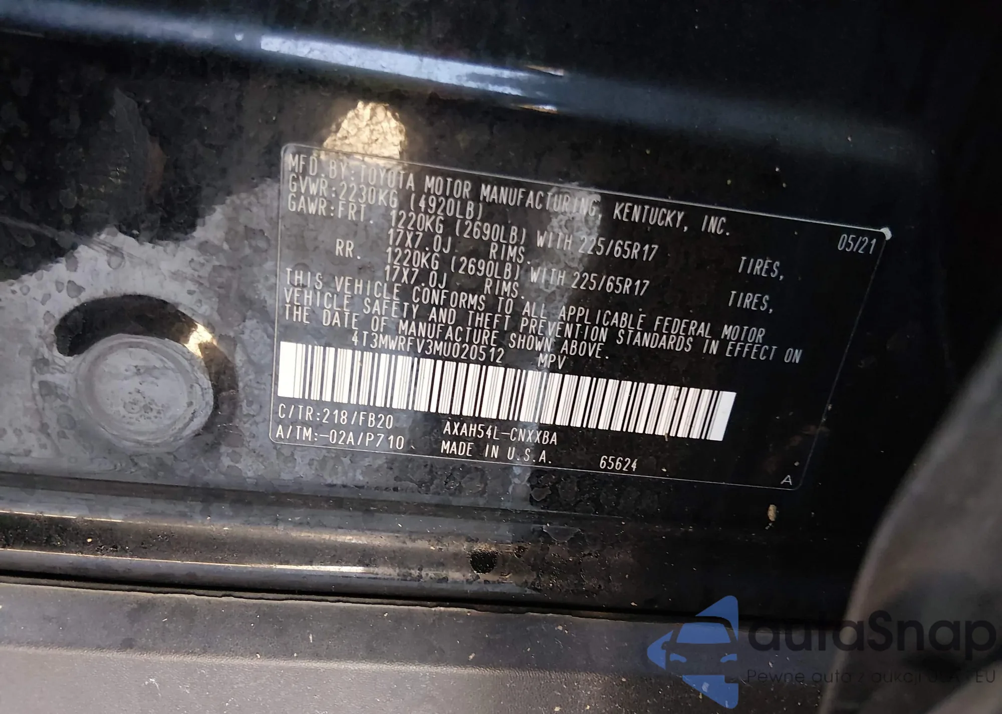 LOT: 43616114 VIN: 4S4BTAFCXM3136174