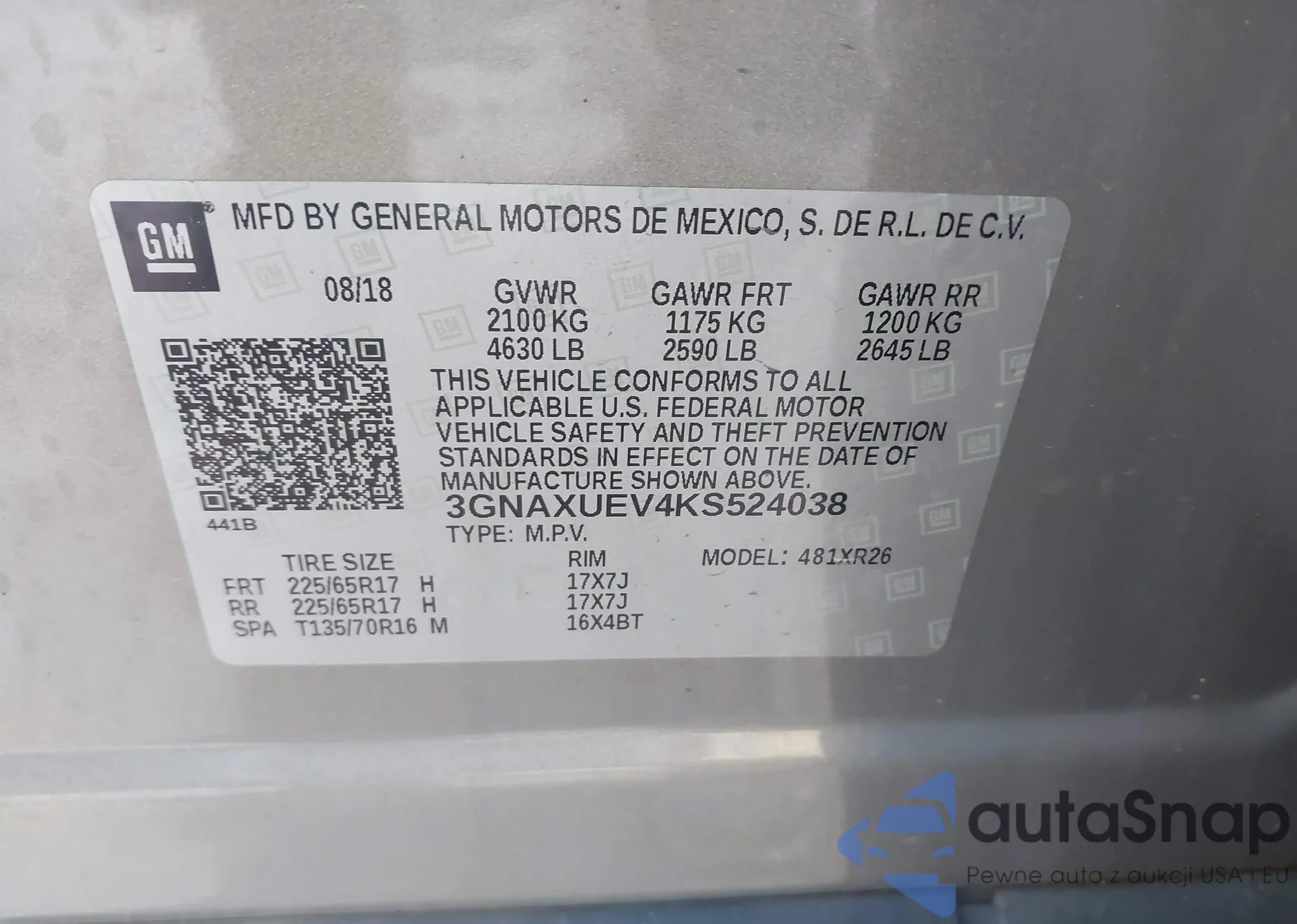 LOT: 43508164 VIN: JA4AP3AW8JU015953