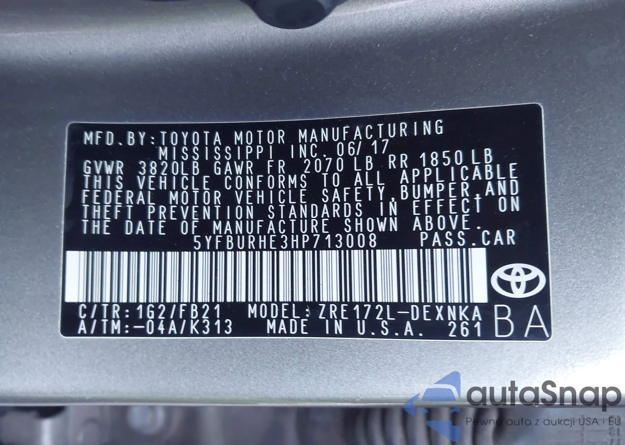• VIN 5YFBURHE3HP713008