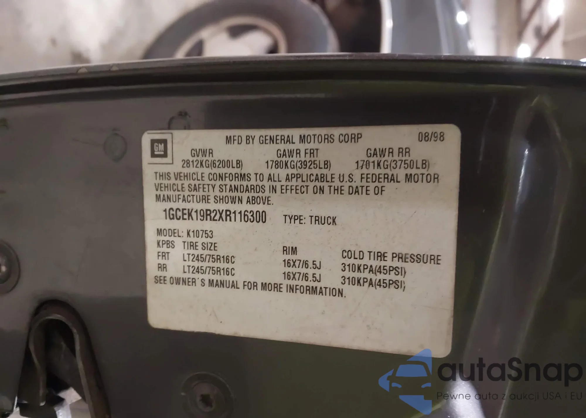 • VIN KL79MSSL6NB026576