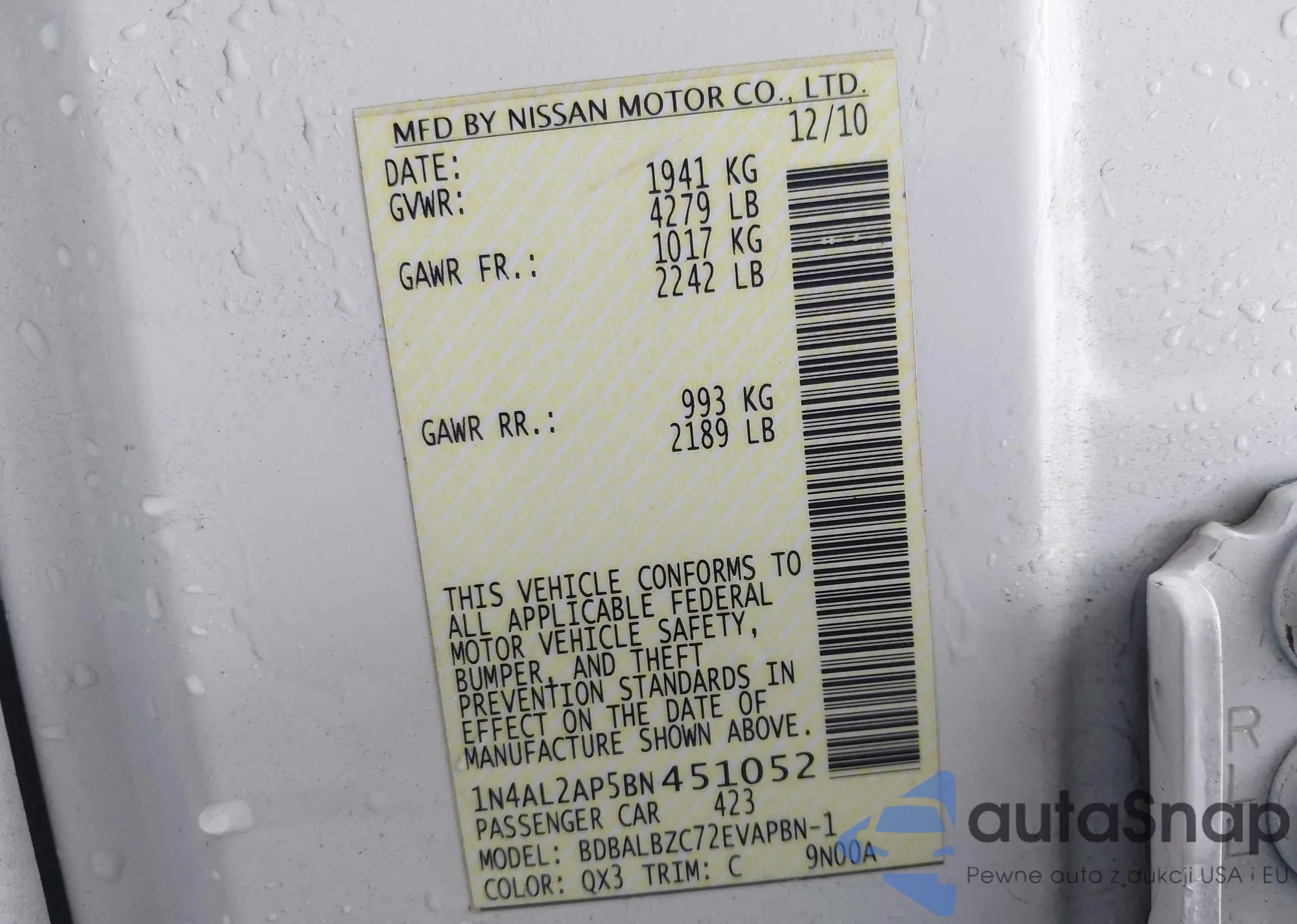 LOT: 44184522 VIN: 1N4AL2AP5BN451052