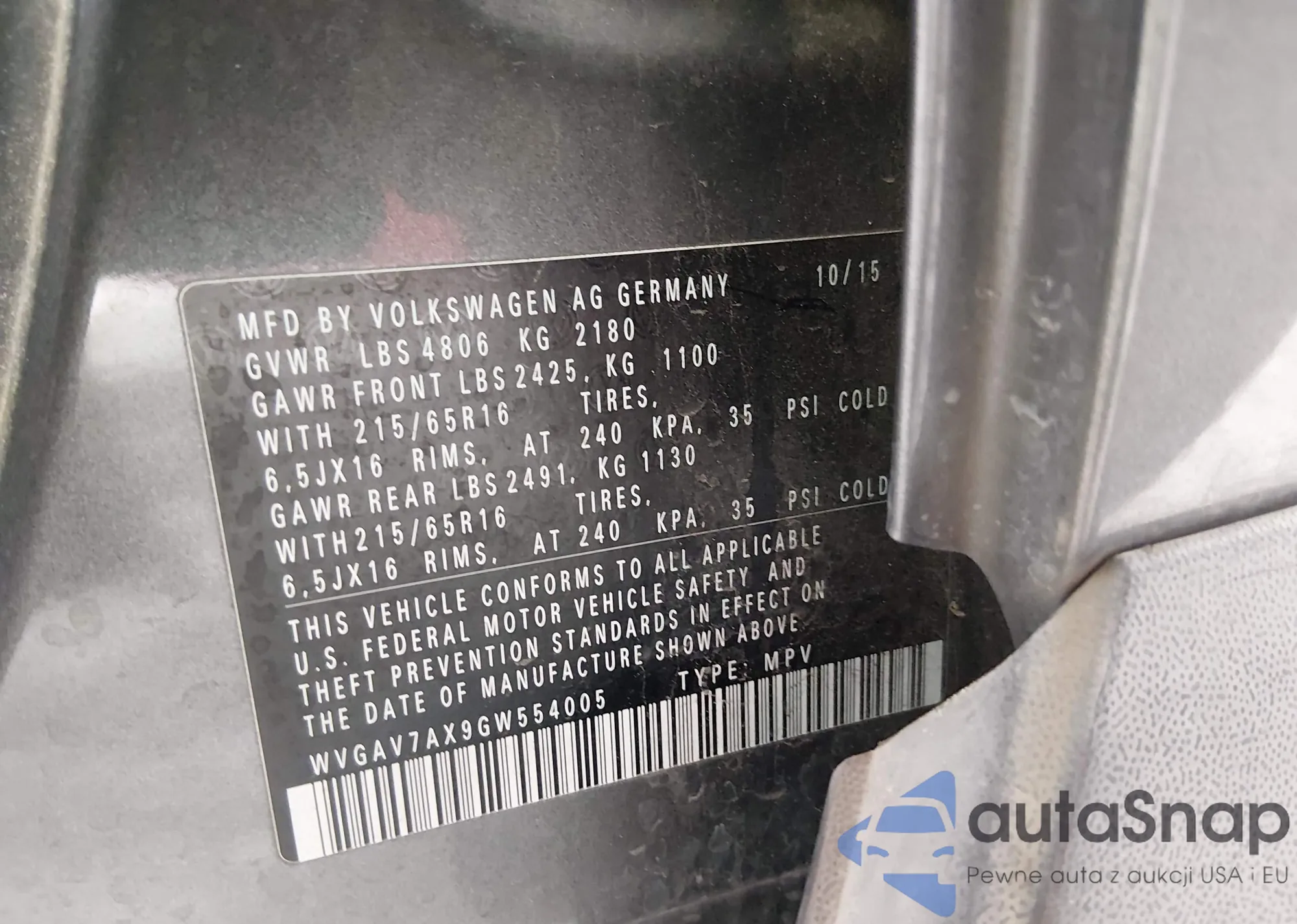 • VIN WVGAV7AX9GW554005