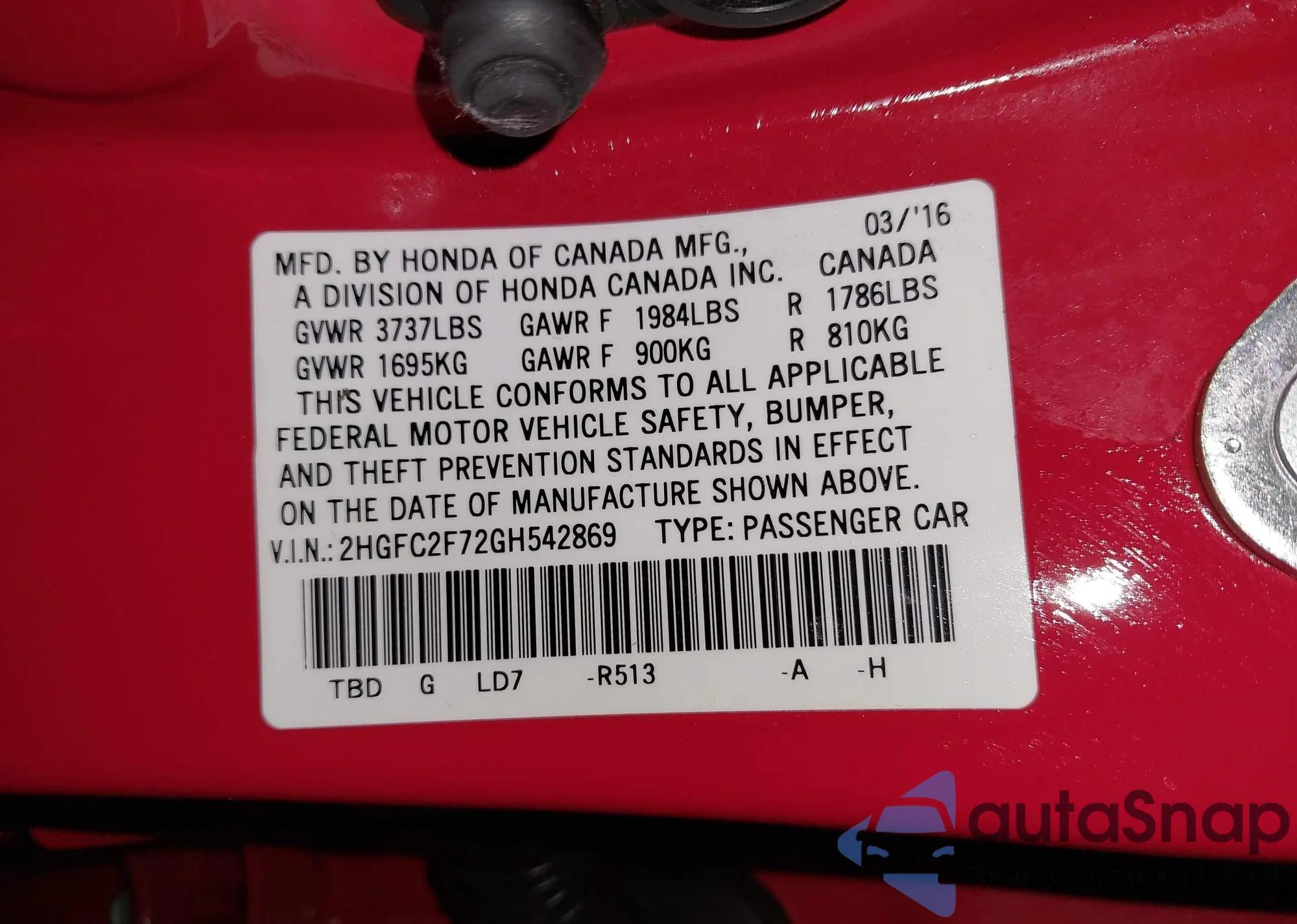 • VIN 2HGFC2F72GH542869