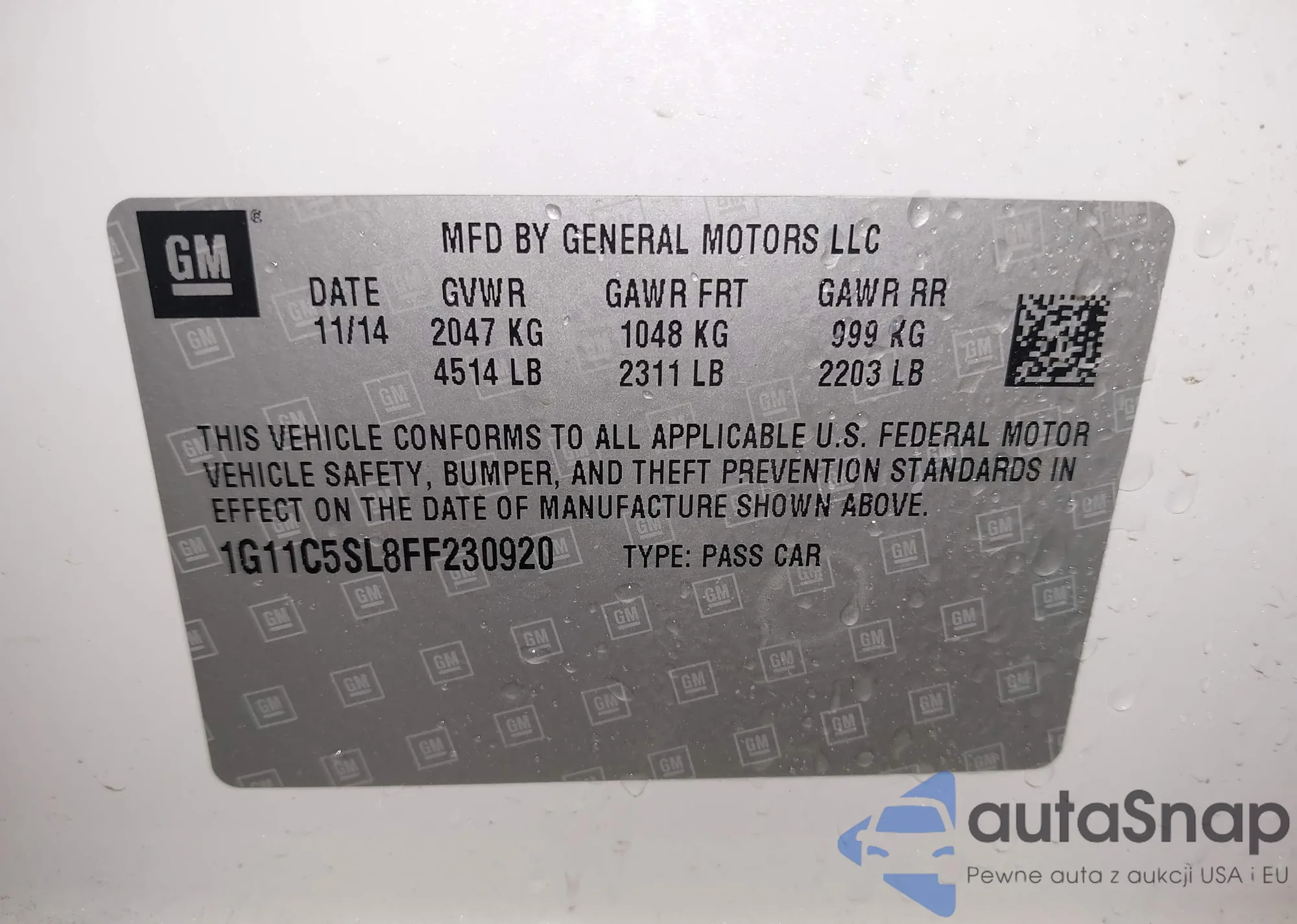 LOT: 44325893 VIN: 1G11C5SL8FF230920