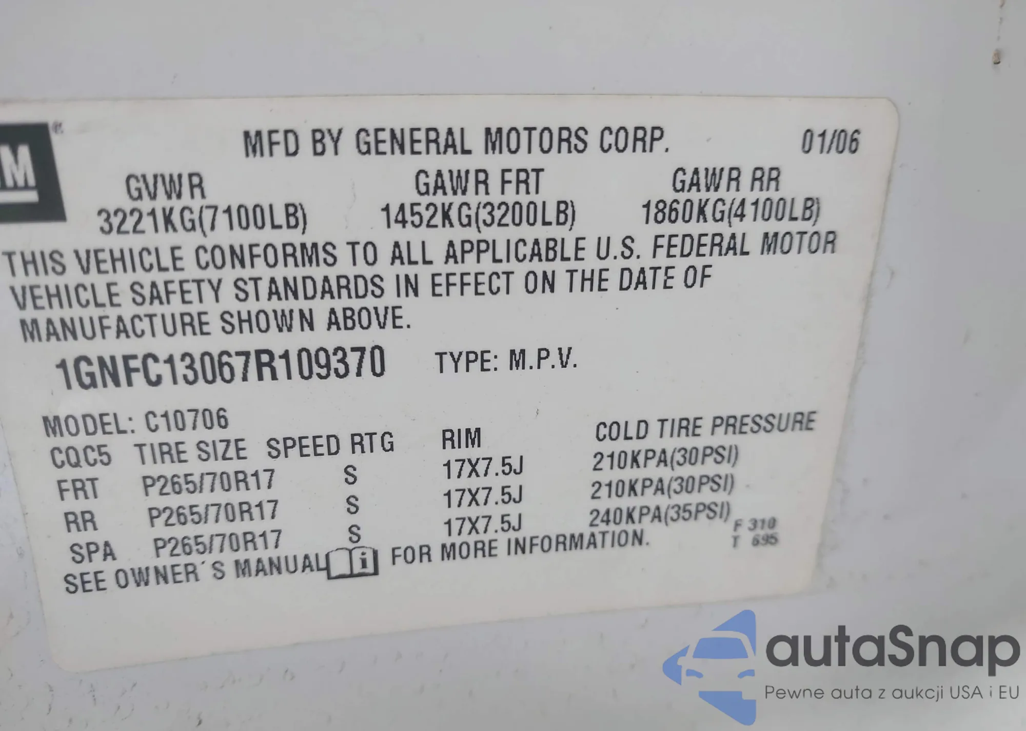 • VIN 1GNFC13067R109370