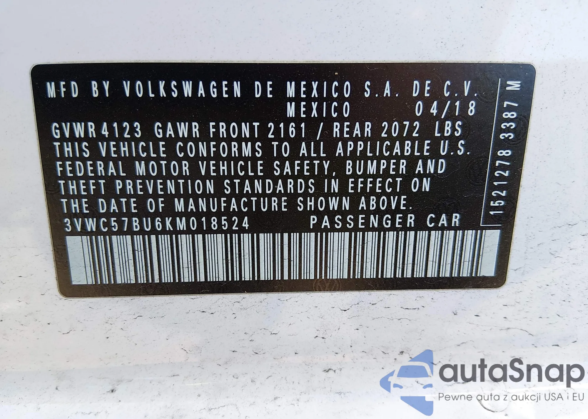• VIN 3VWC57BU6KM018524