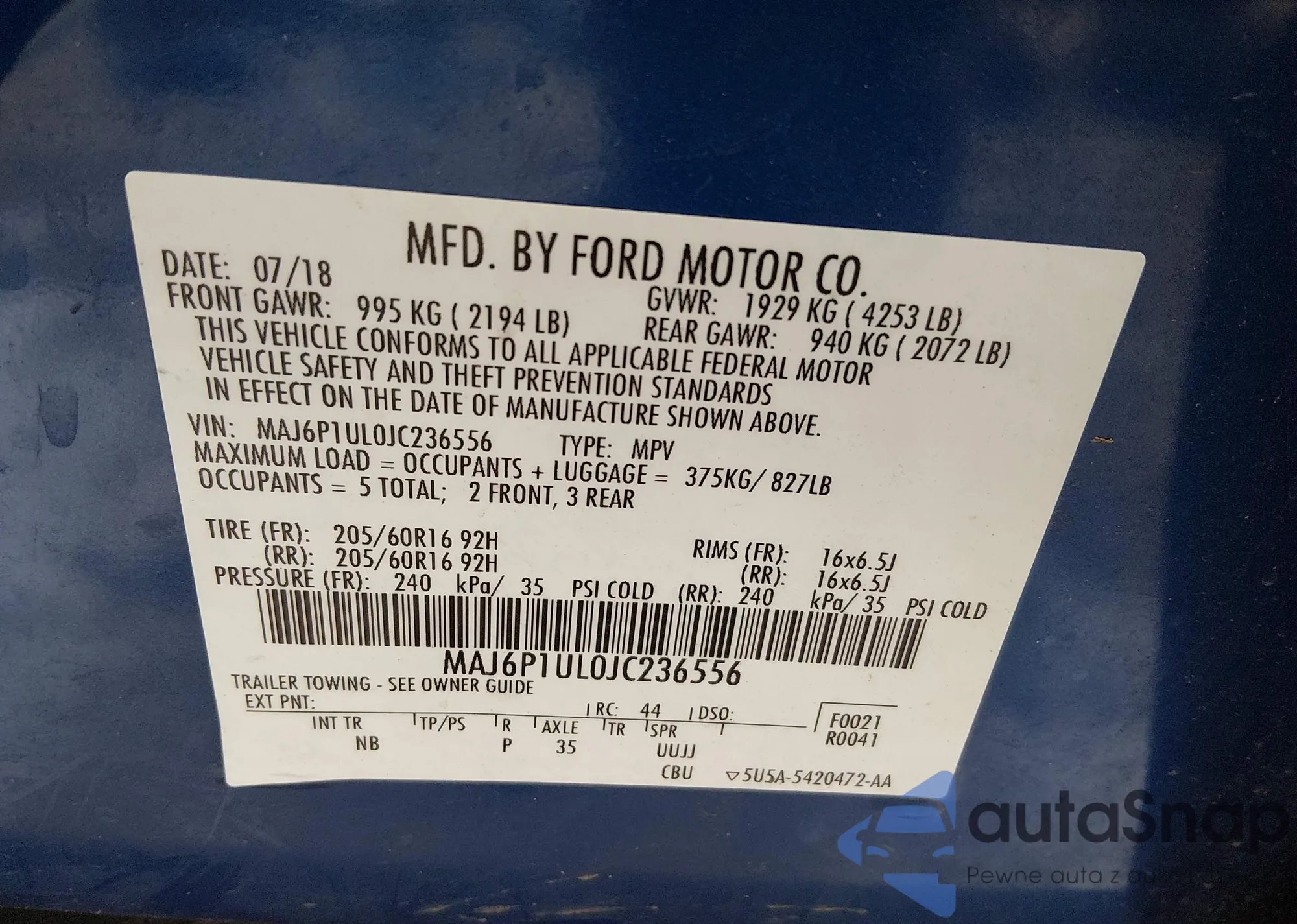 • VIN 1FA6P8TH0G5229092