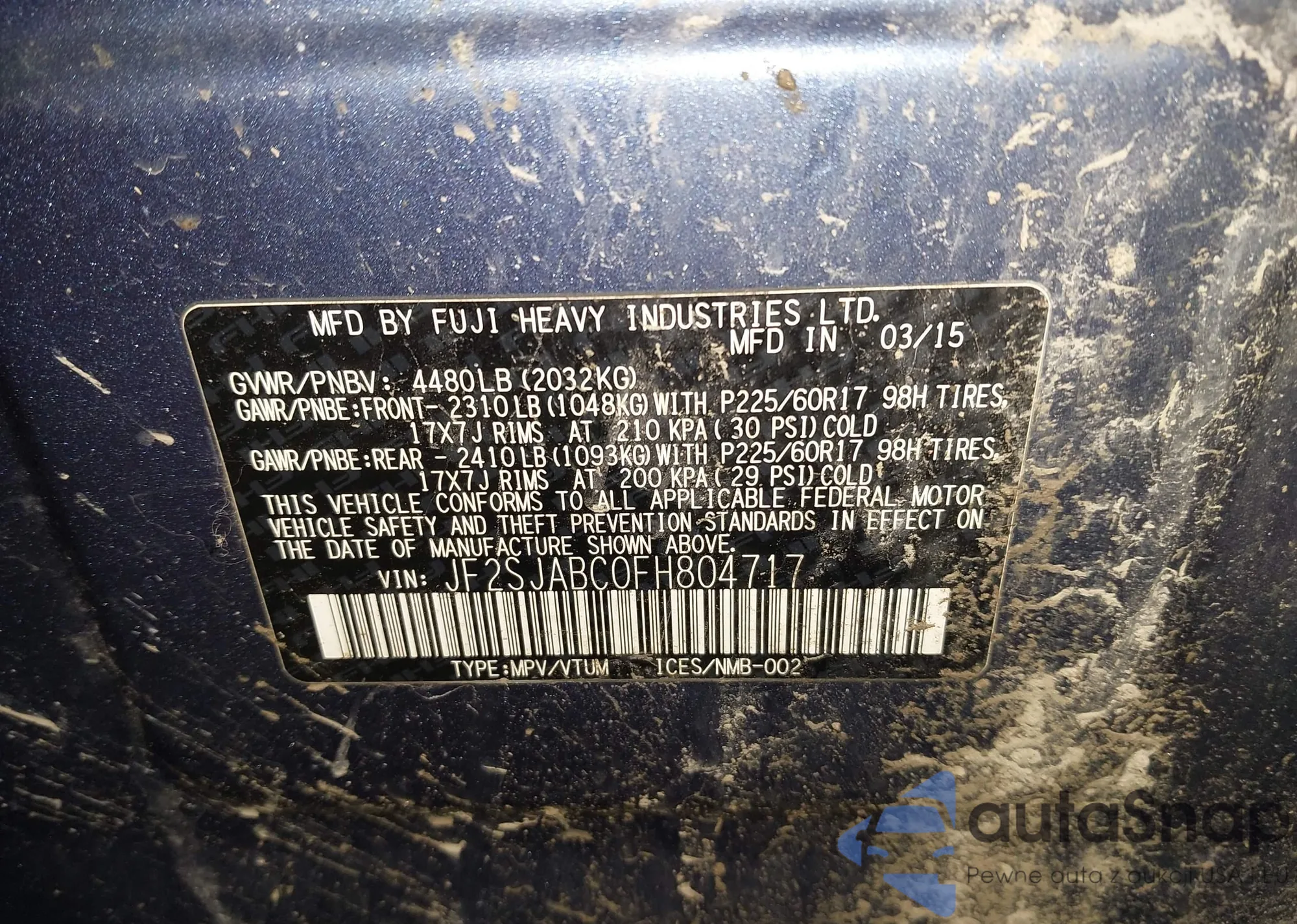 LOT: 44329938 VIN: JF2SJABC0FH804717
