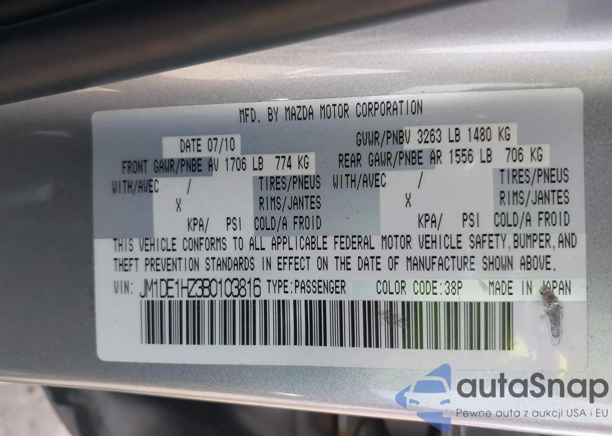 LOT: 44114093 VIN: JM1DE1HZ3B0103816
