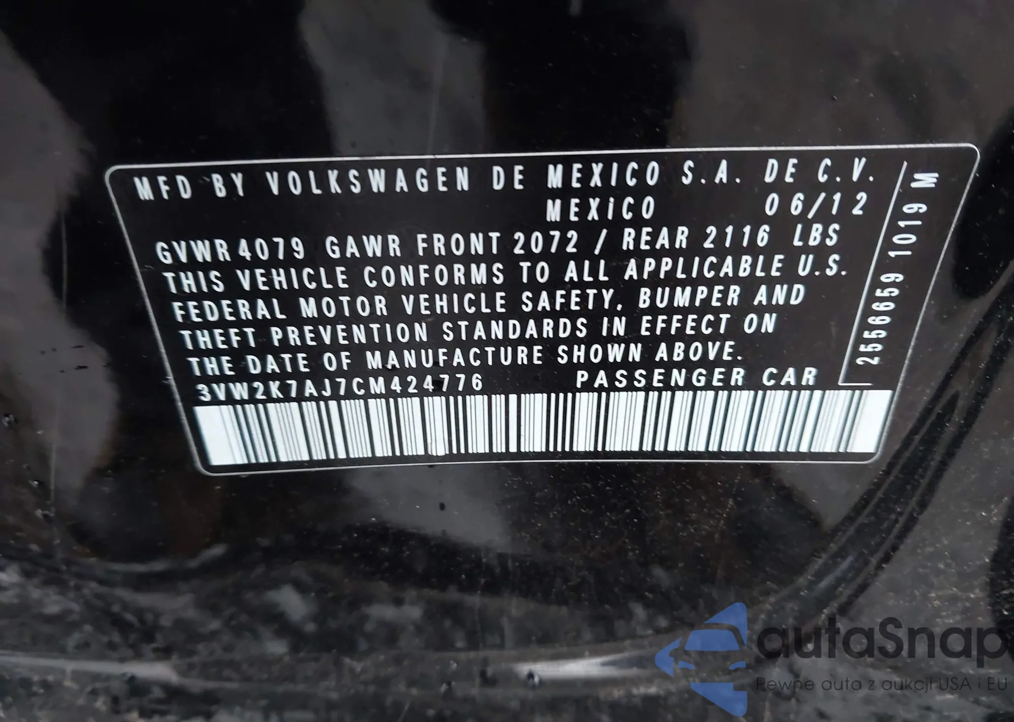 • VIN 3VW2K7AJ7CM424776