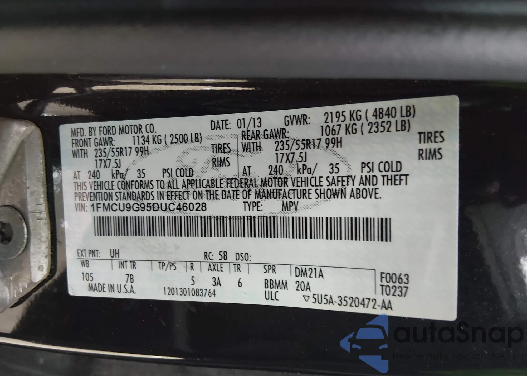 • VIN 1FMCU9G95DUC46028