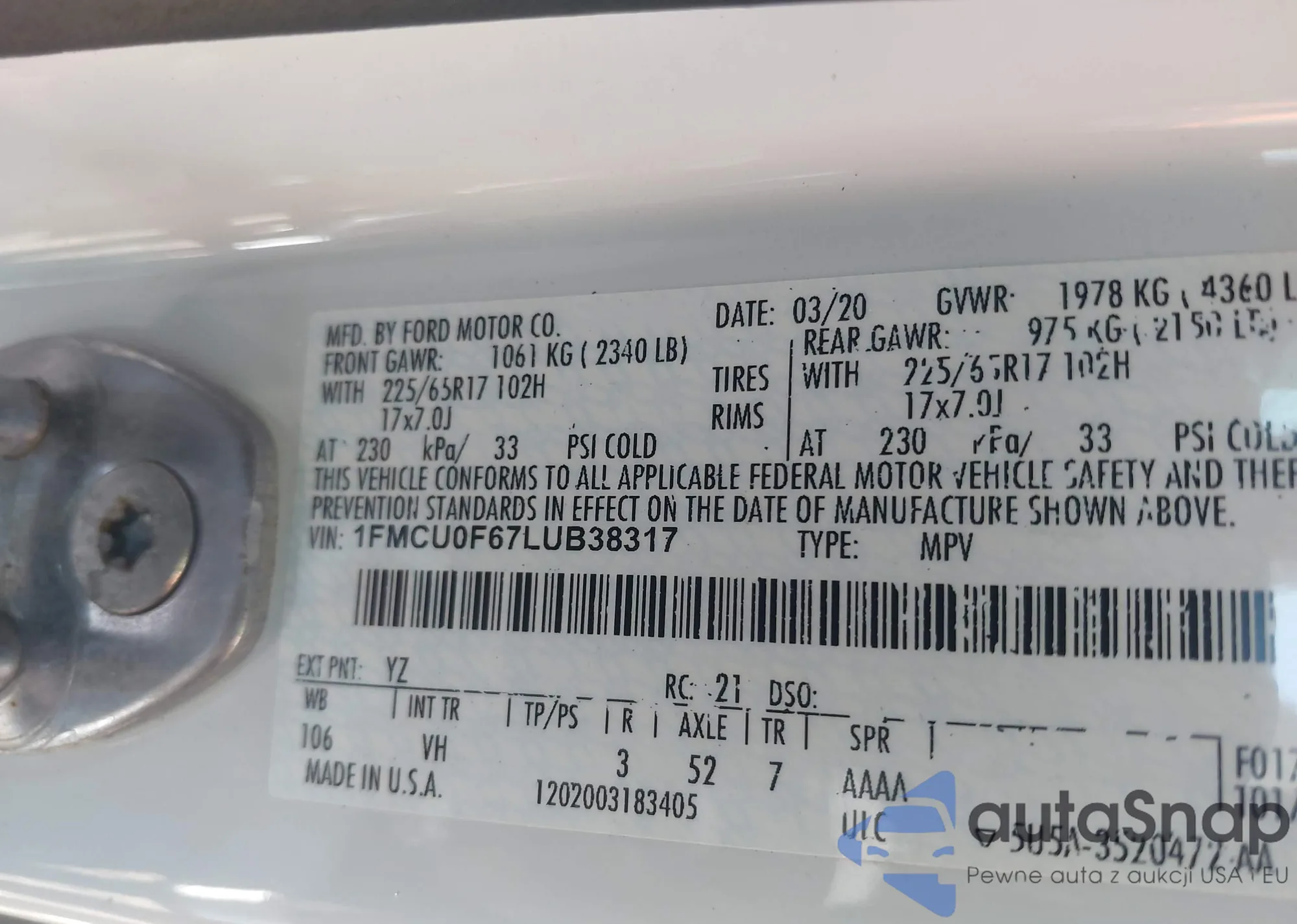 • VIN 1FMCU0F67LUB38317