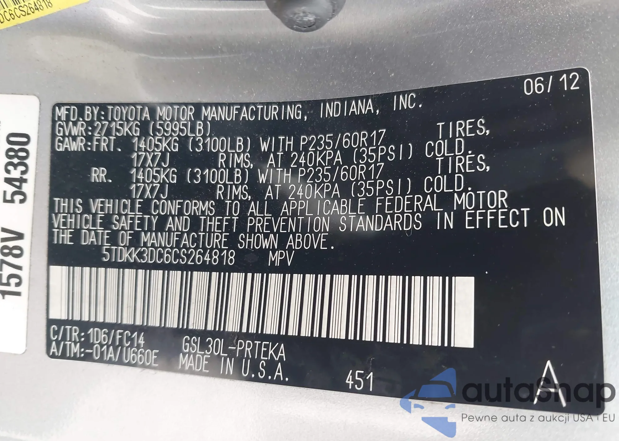 LOT: 44410924 VIN: 5TDKK3DC6CS264818