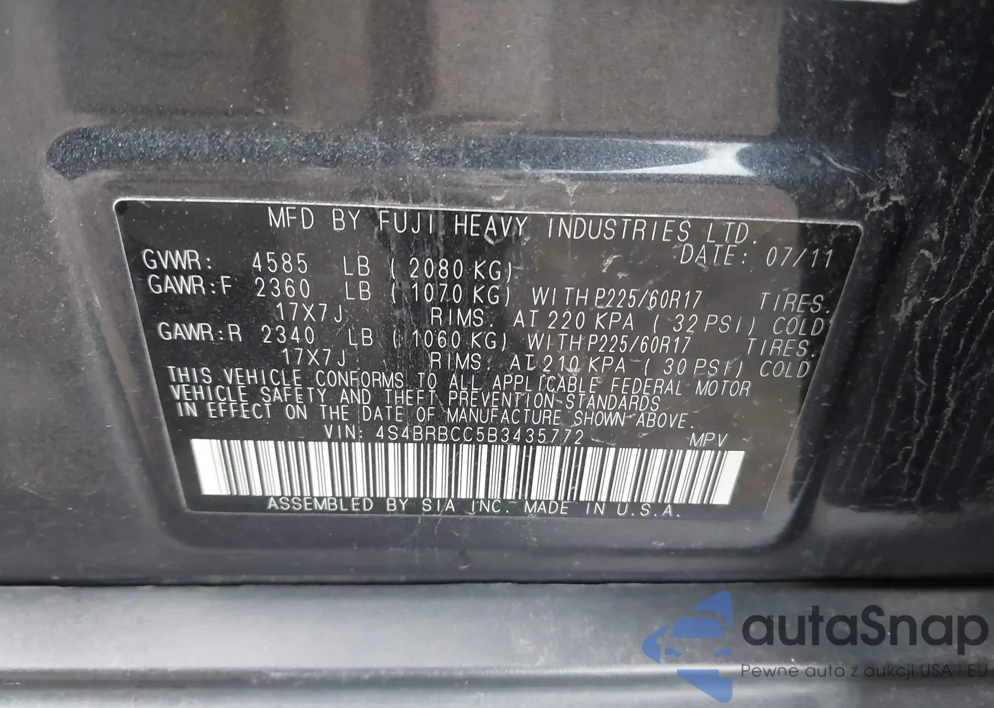 • VIN 4S3BWAD67N3014558