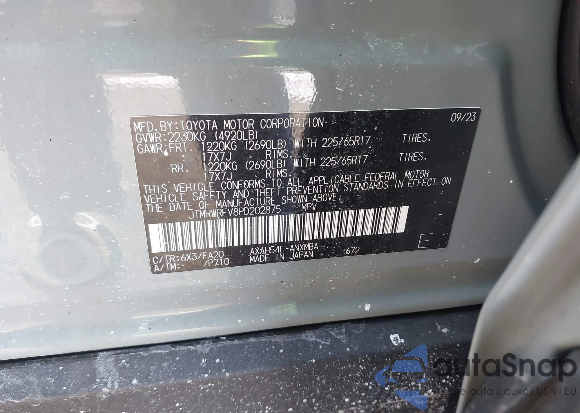 LOT: 43858133 VIN: JTMRWRFV8PD202875