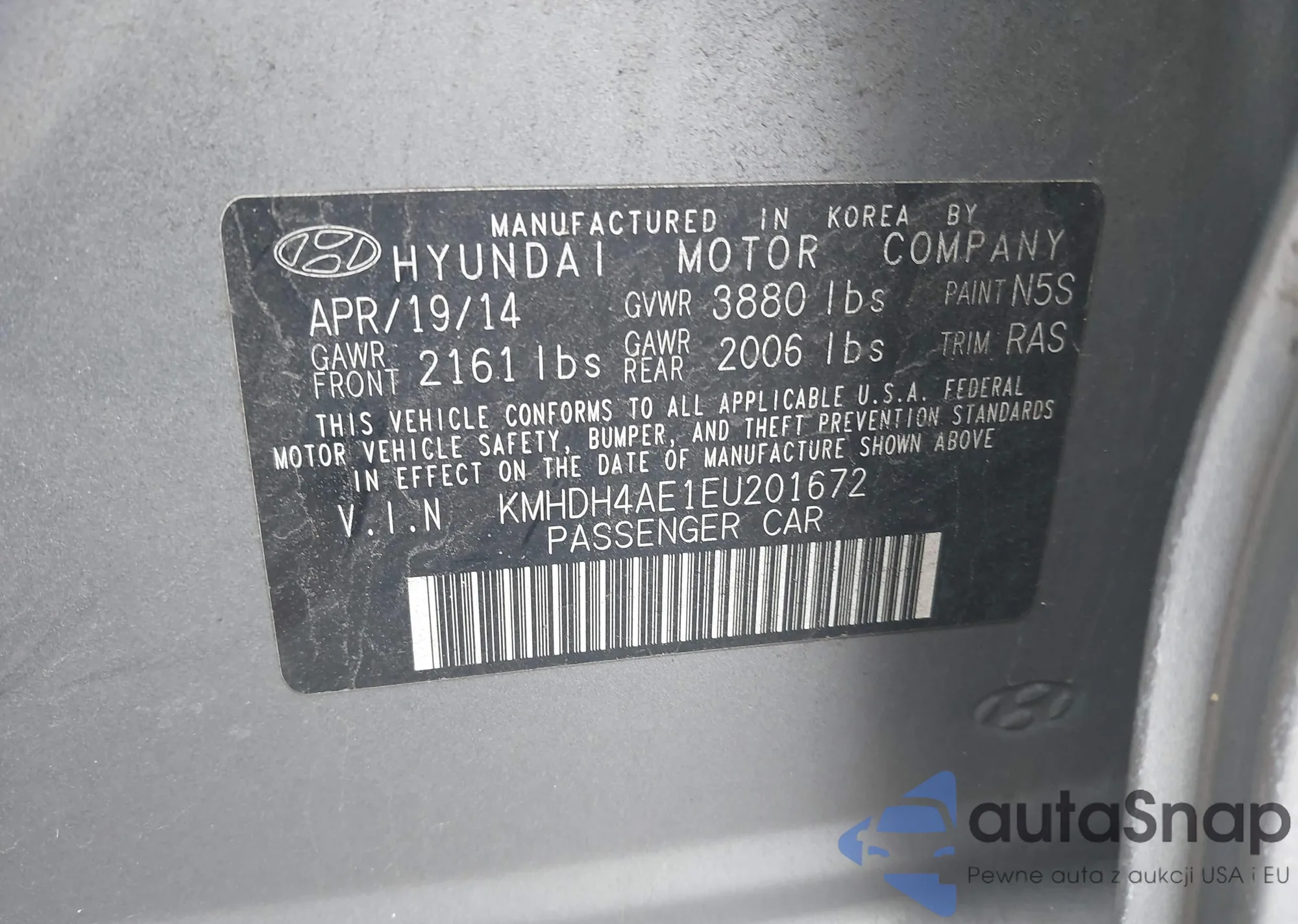 LOT: 44101761 VIN: KMHDH4AE1EU201672