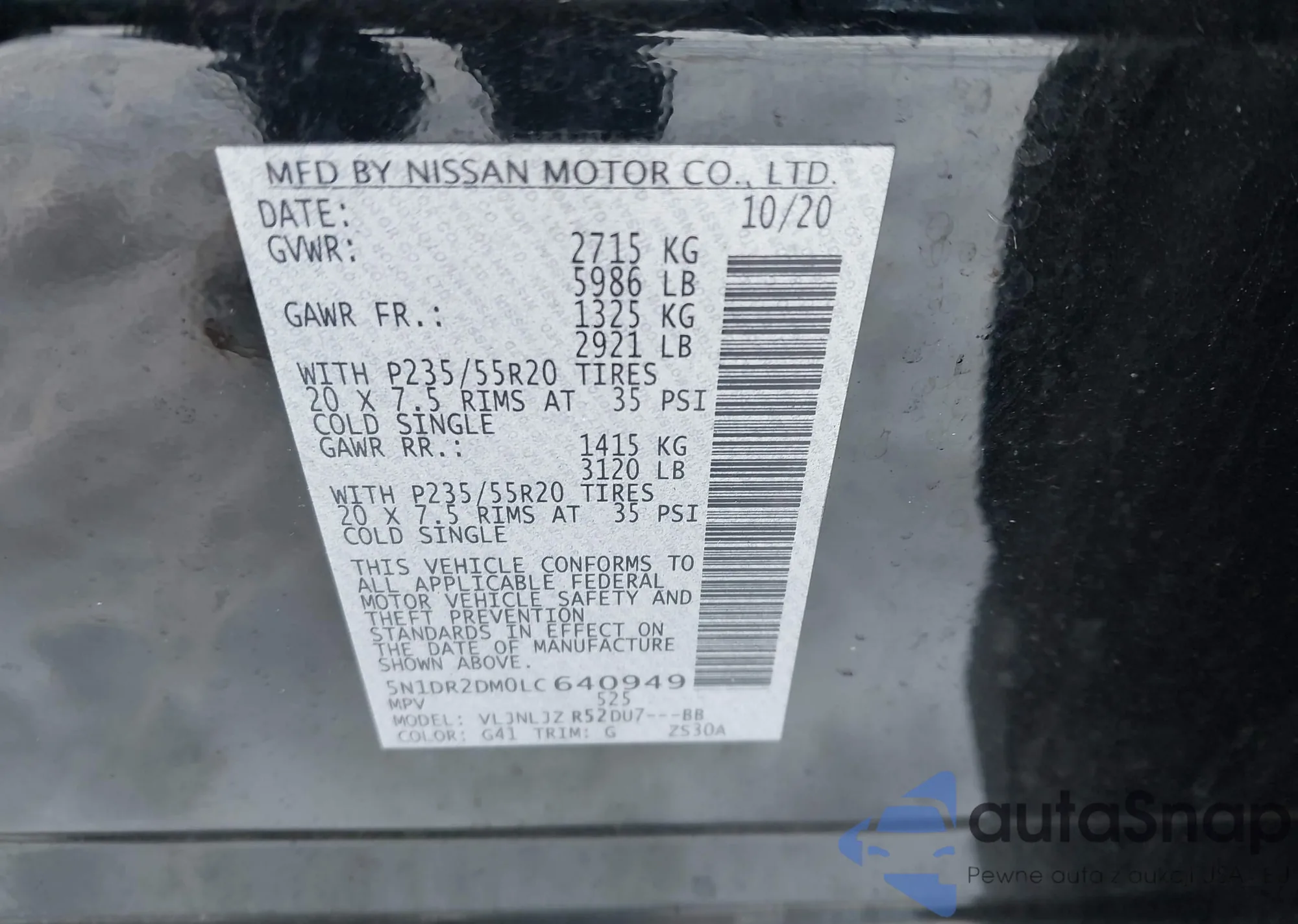 • VIN 5N1DR2DM0LC640949
