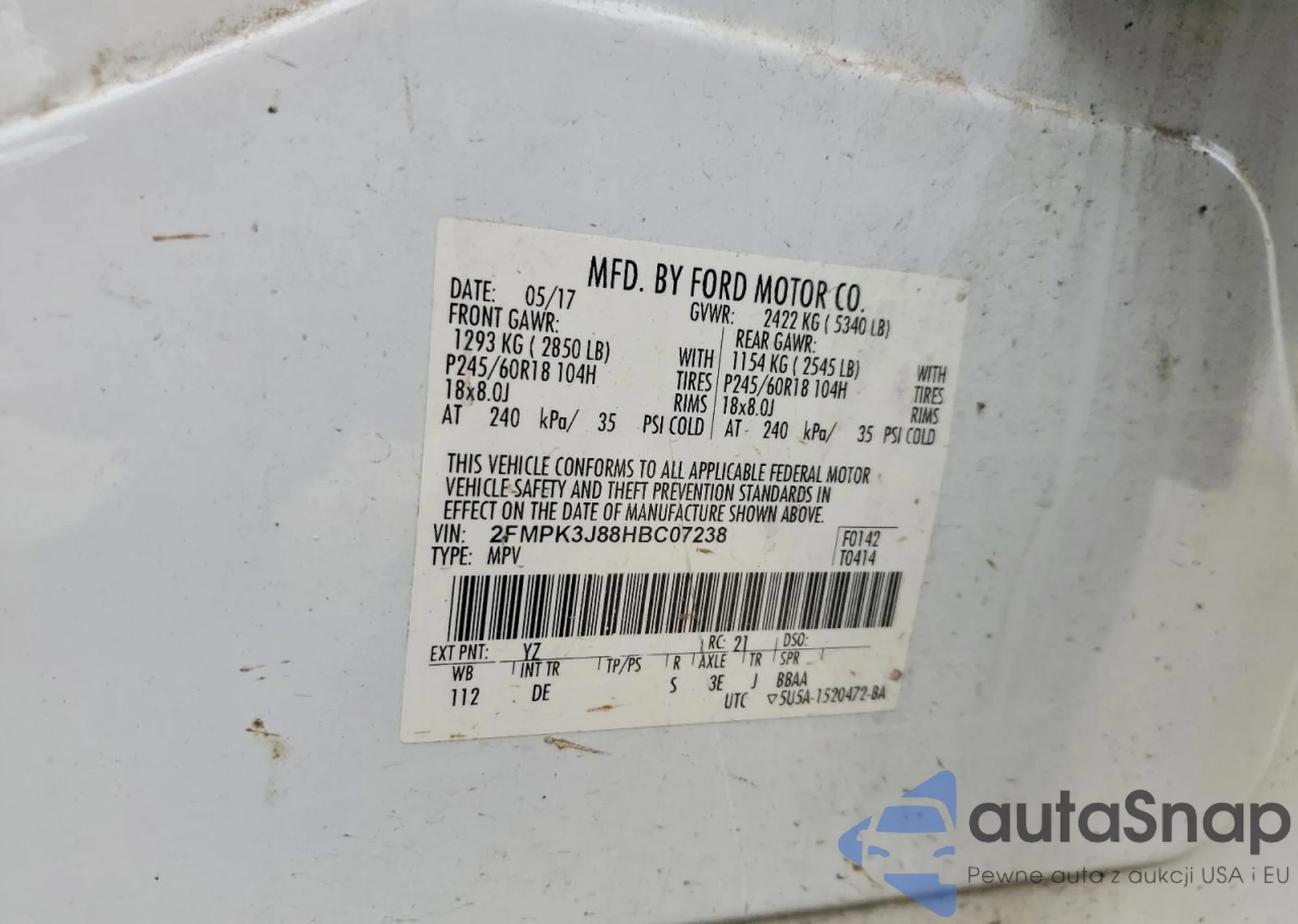 • VIN 2FMPK3J88HBC07238