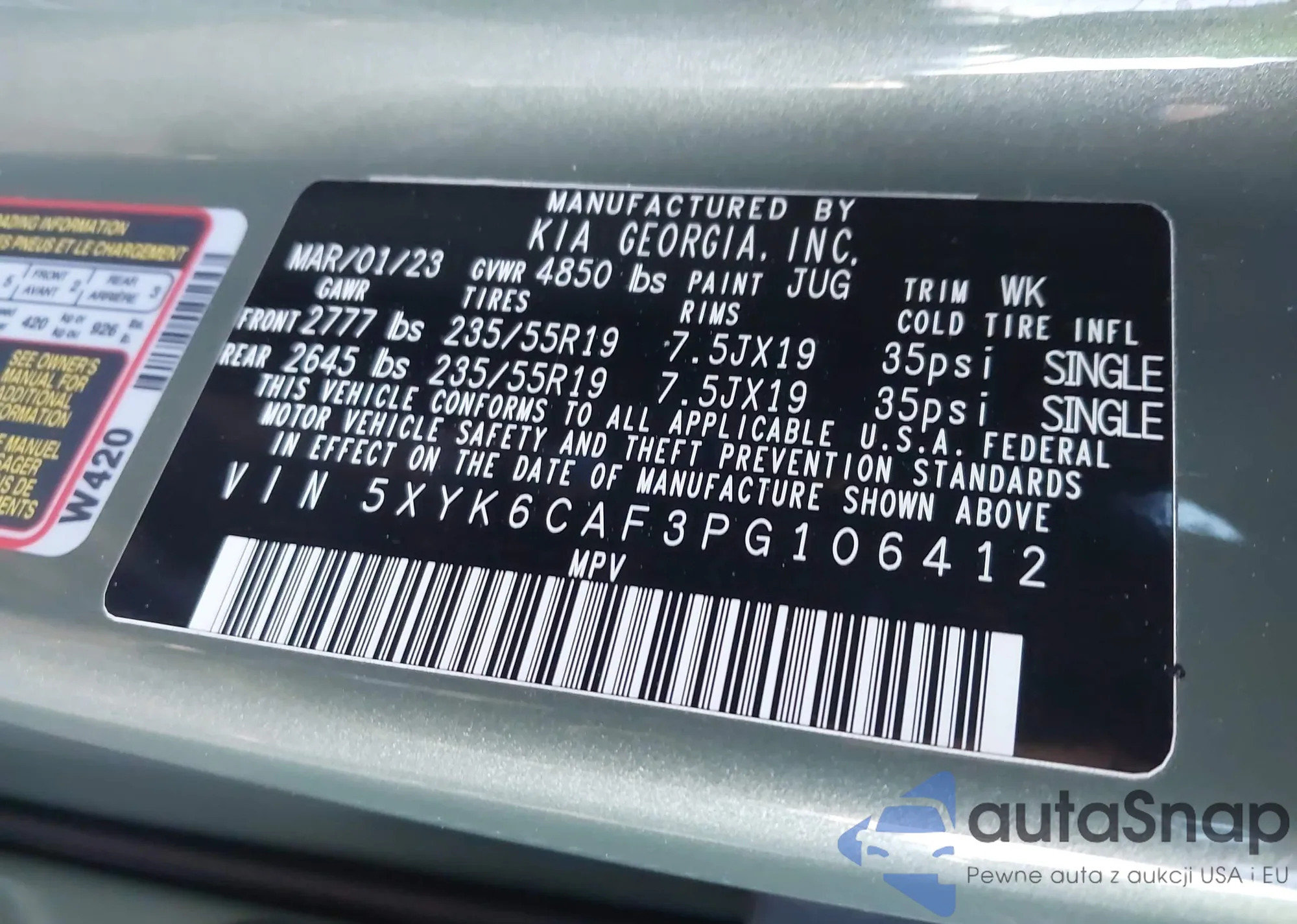 • VIN 5XYK6CAF3PG106412
