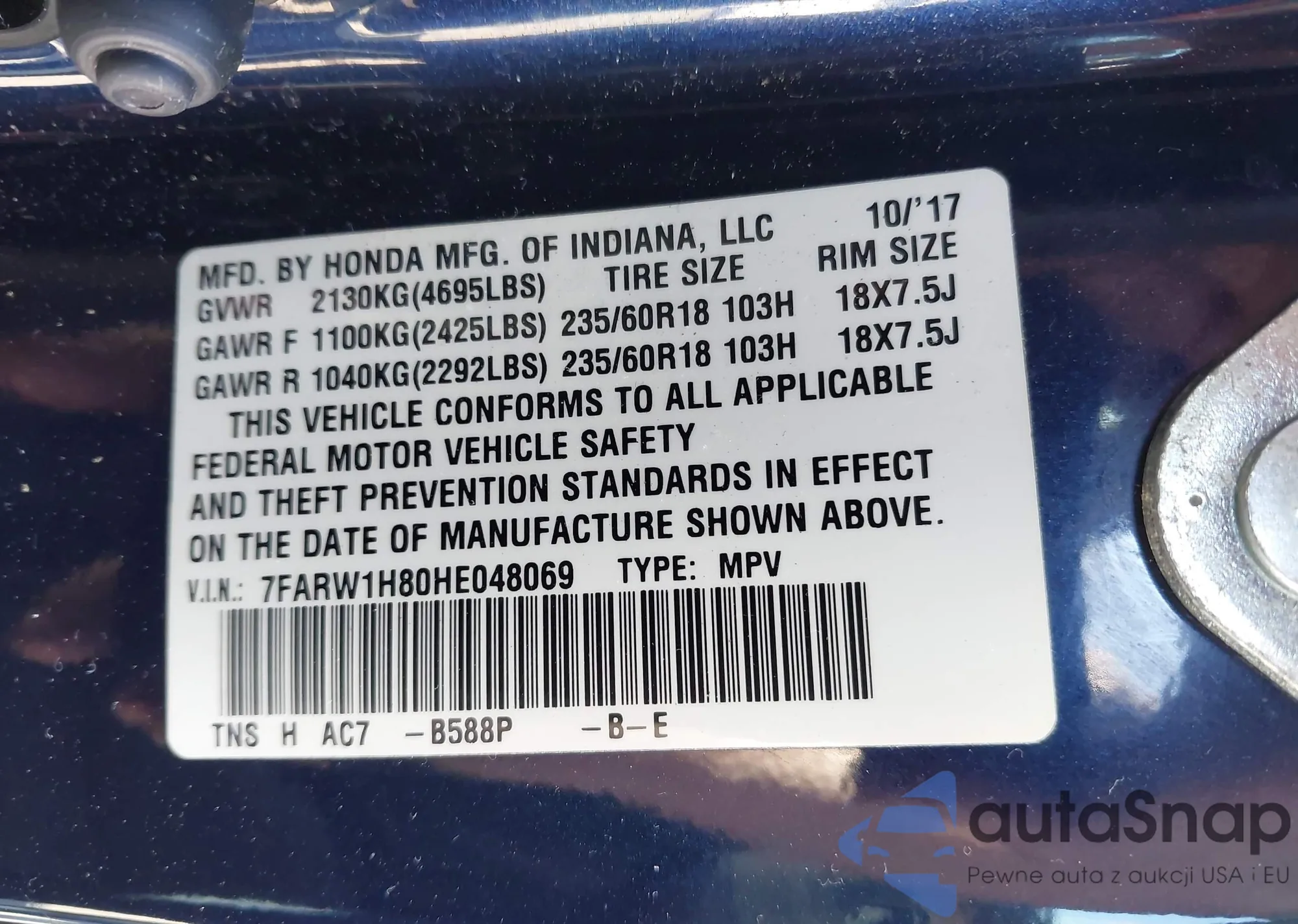 • VIN 7FARW1H80HE048069
