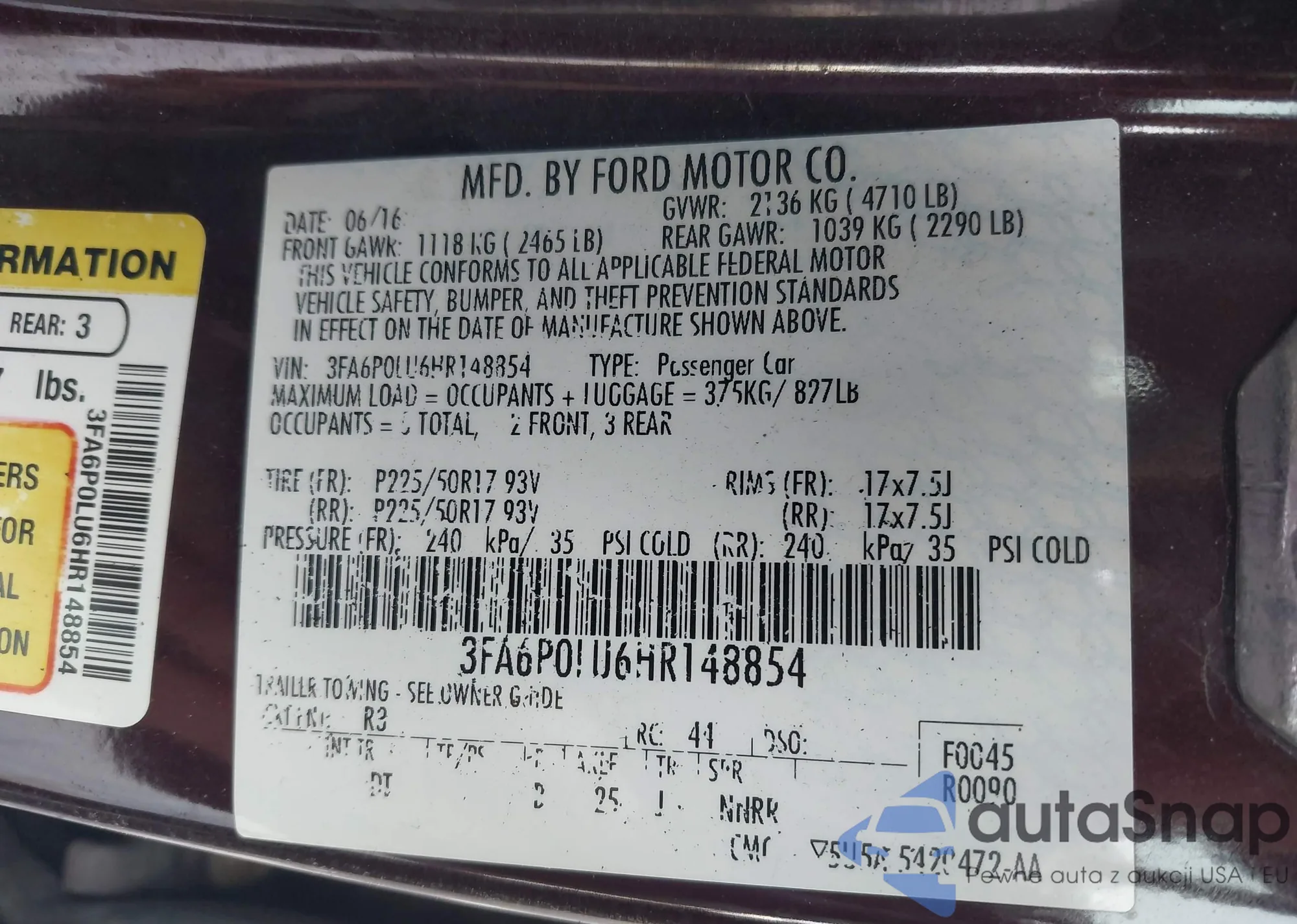 • VIN 3FA6P0LU6HR148854