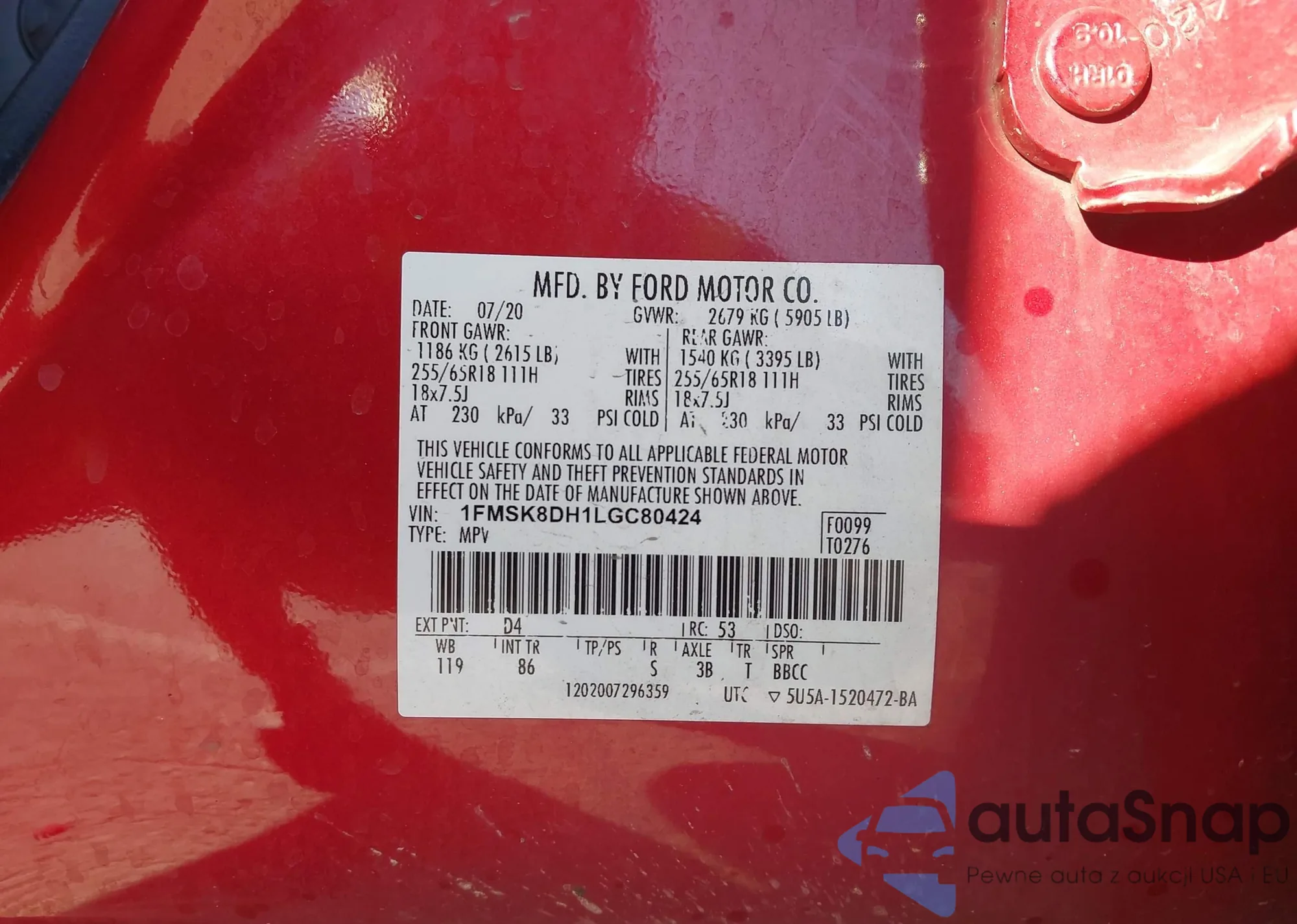• VIN 1FMSK8DH1LGC80424