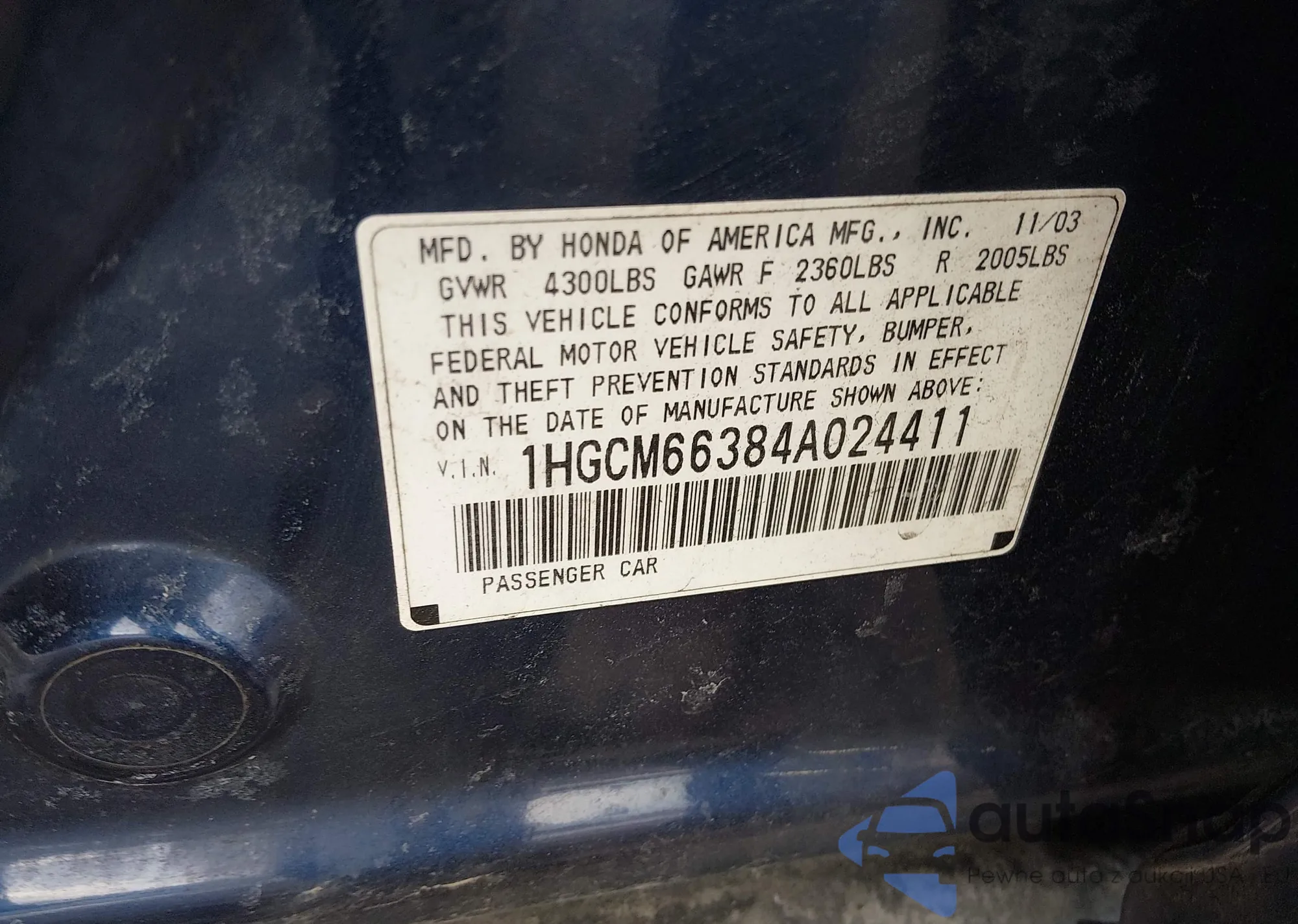 LOT: 44356576 VIN: 1HGCM66384A024411