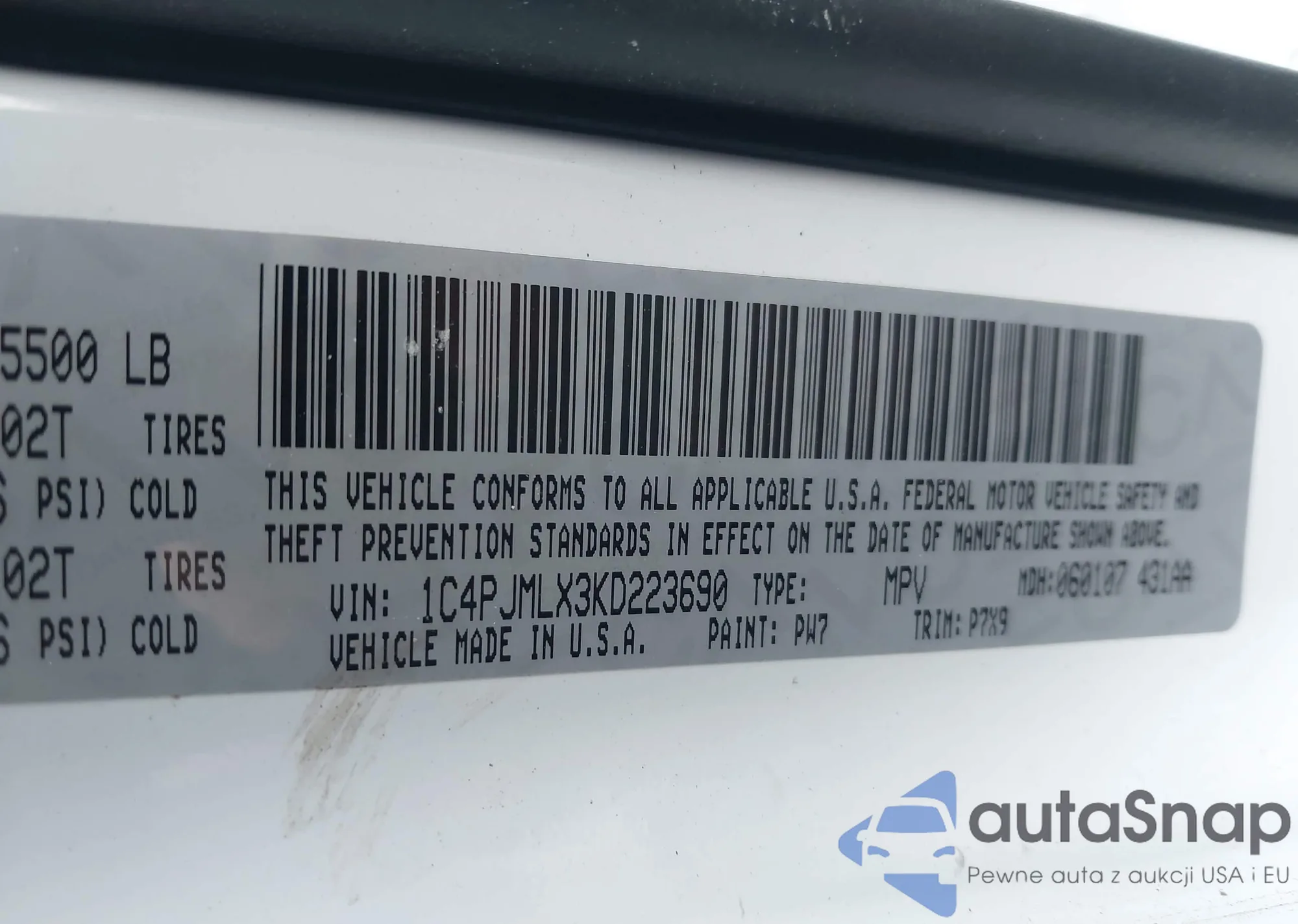 • VIN 1C4PJMLX3KD223690