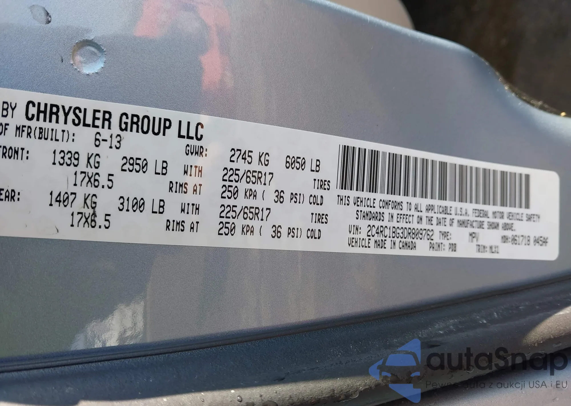 • VIN 2C4RC1BG3DR809762