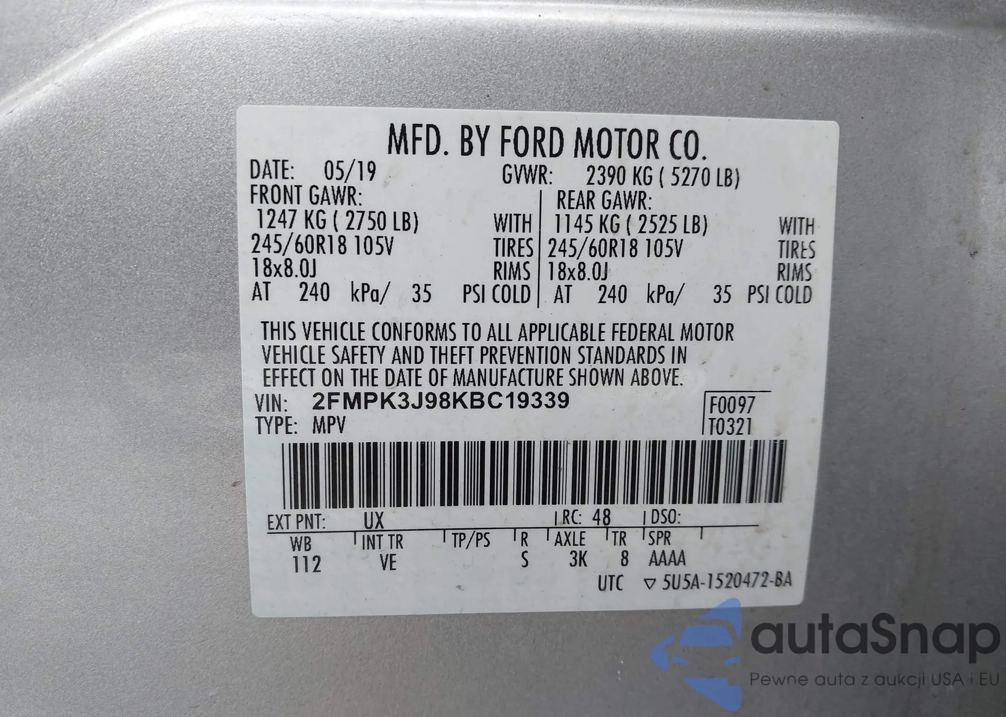 • VIN 2FMPK3J98KBC19339