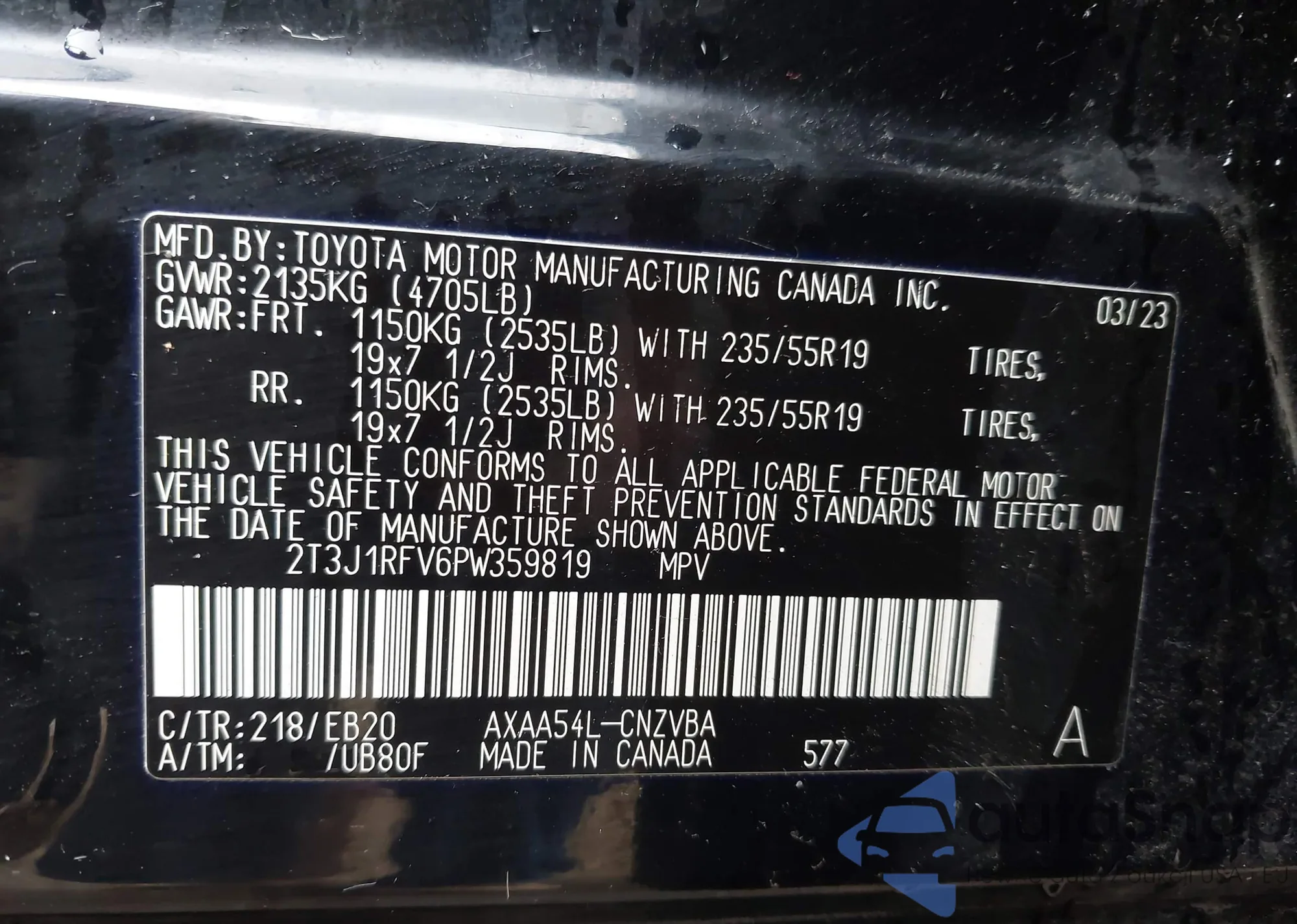 • VIN 2T3J1RFV6PW359819