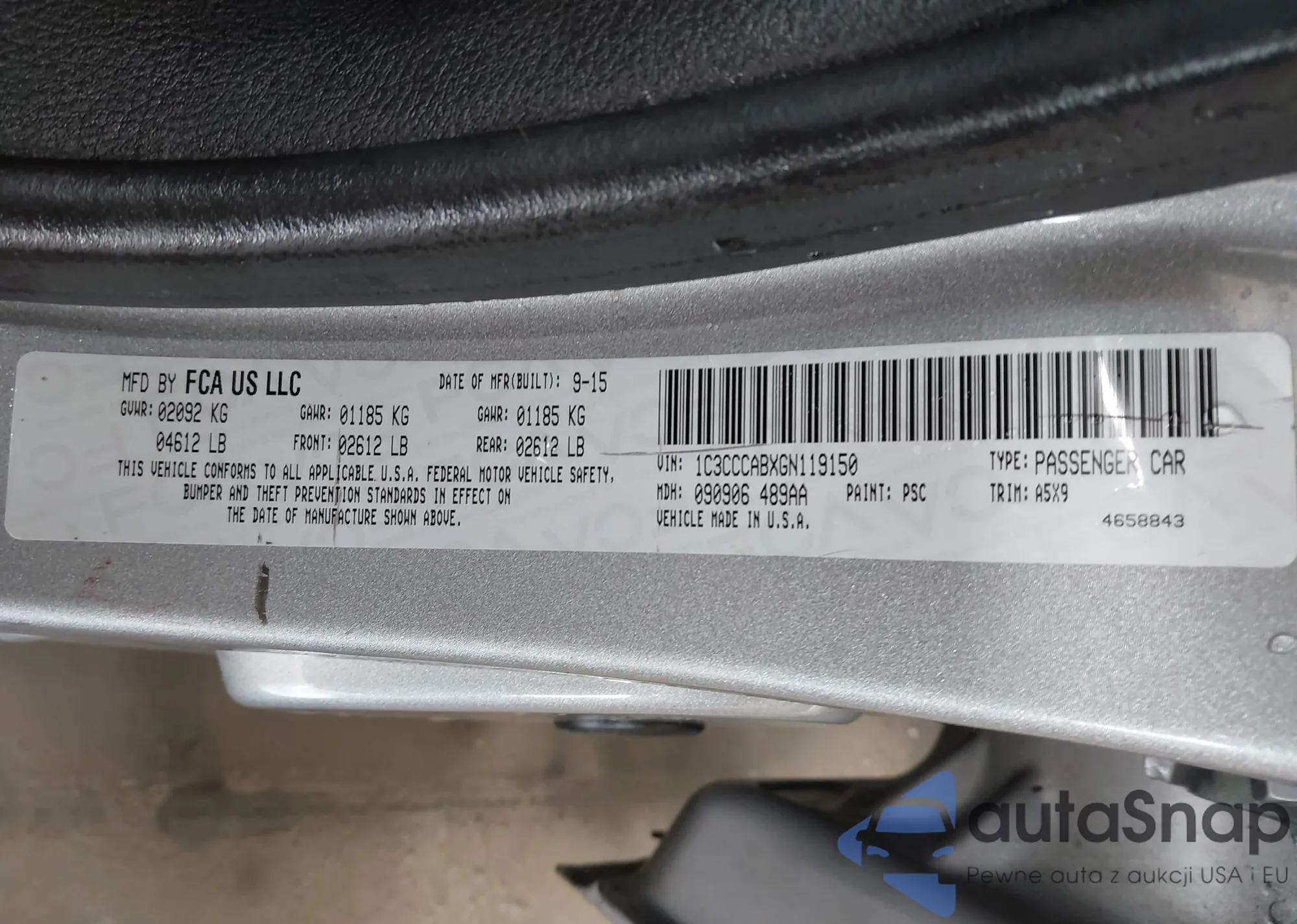 LOT: 44284749 VIN: 1C3CCCABXGN119150