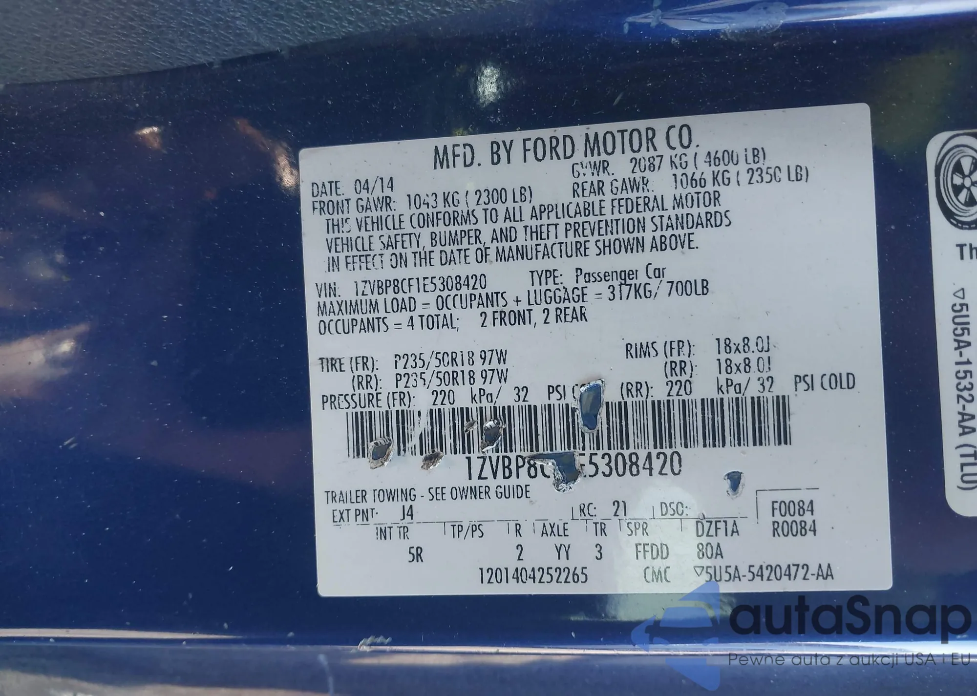 LOT: 44263722 VIN: 1ZVFT82H665245865