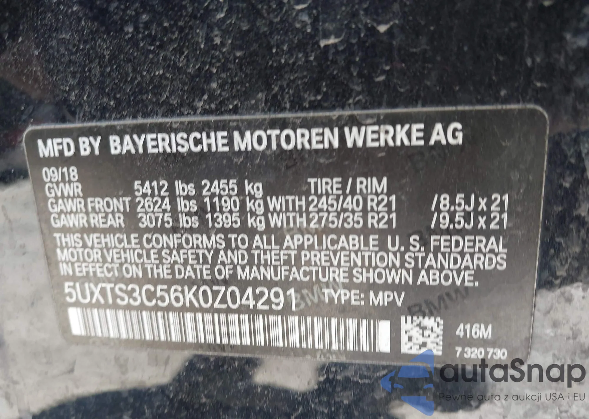 2019 BMW X3 M40I from USA, damaged, VIN 5UXTS3C56K0Z04291