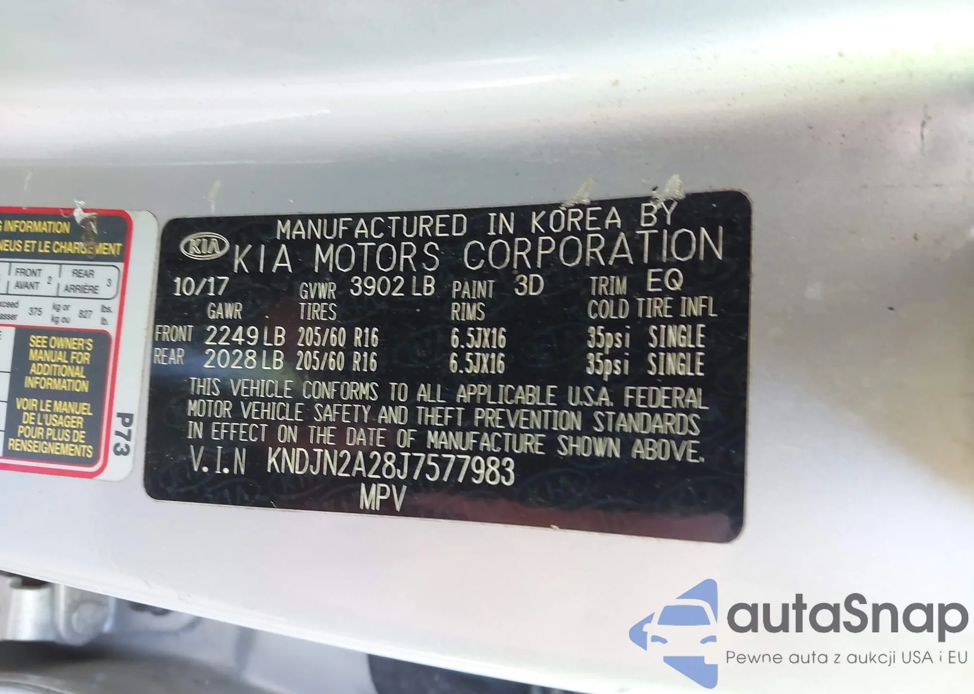 LOT: 43995932 VIN: KNDJN2A28J7577983