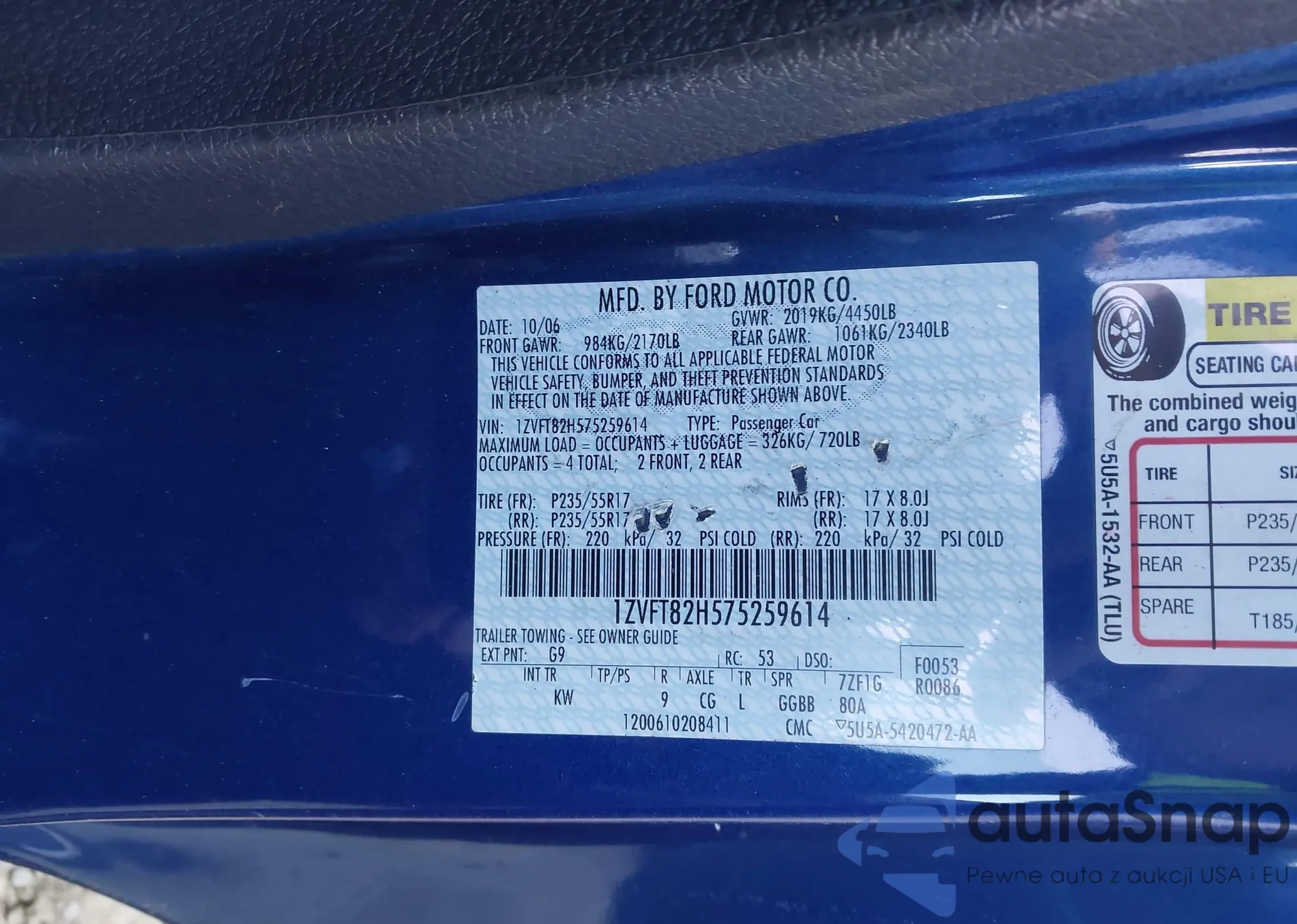 • VIN 1ZVFT82H575259614
